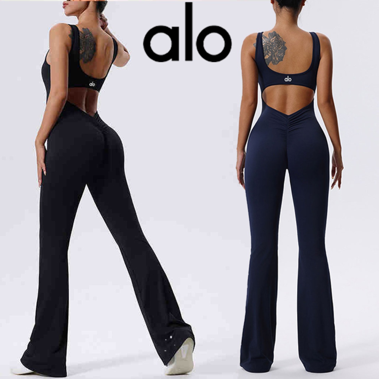 Alo Yoga アロヨガ ヨガウェア 美脚効果 おしゃれ ブラック ネイビー 着痩せ レディース オールインワン ジャンプスーツ シームレス スポーツ用品 フィットネス 吸湿速乾 セットアップ