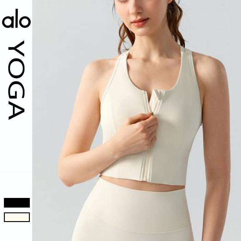Alo Yoga アロヨガ スポーツブラ 揺れない 前開き レディース シームレス ランニング シームレス クロスバック フロントファスナー ヨガ ブラック ホワイト