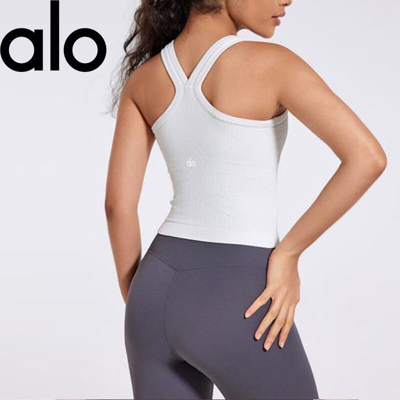 Alo Yoga アロヨガ スポーツブラ 揺れない クロスバック サポートブラ ヨガウェア 美胸 サポート力抜群 サポートブラ ヨガ ランニング ジョギング ダンス ホワイト