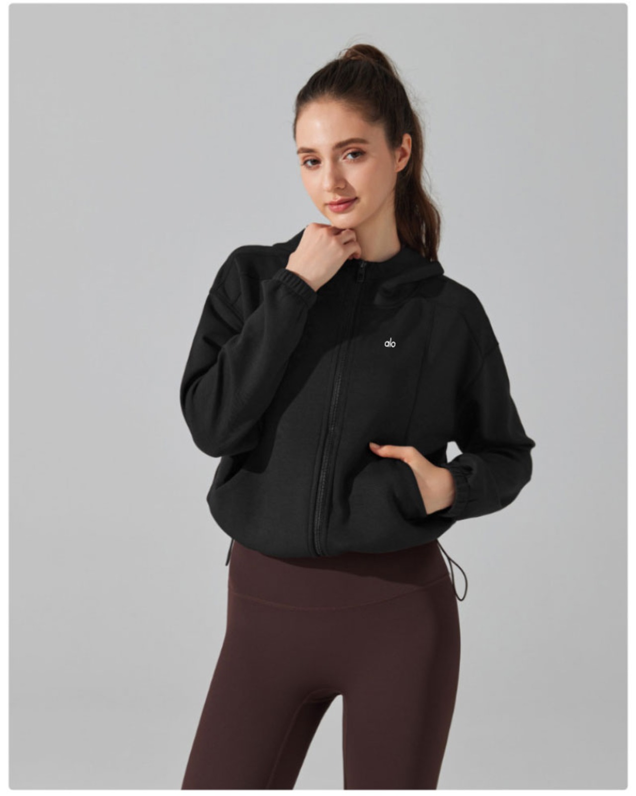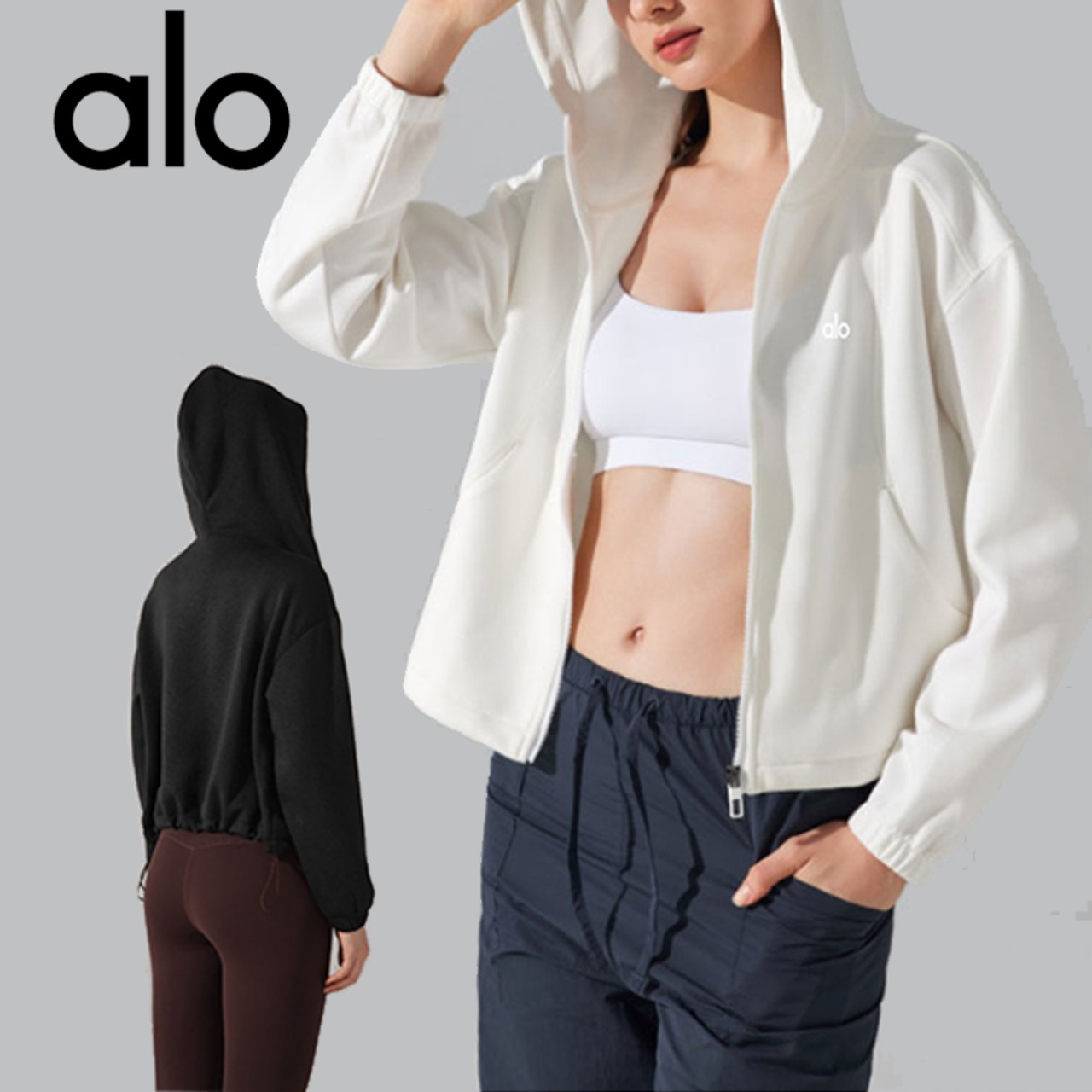 Alo Yoga アロヨガ ジャケット フィットネス トレーニング 春秋 ヨガ フード付き トップス ランニング ジッパー パーカー スポーツ 長袖 レディース ブラック ホワイト