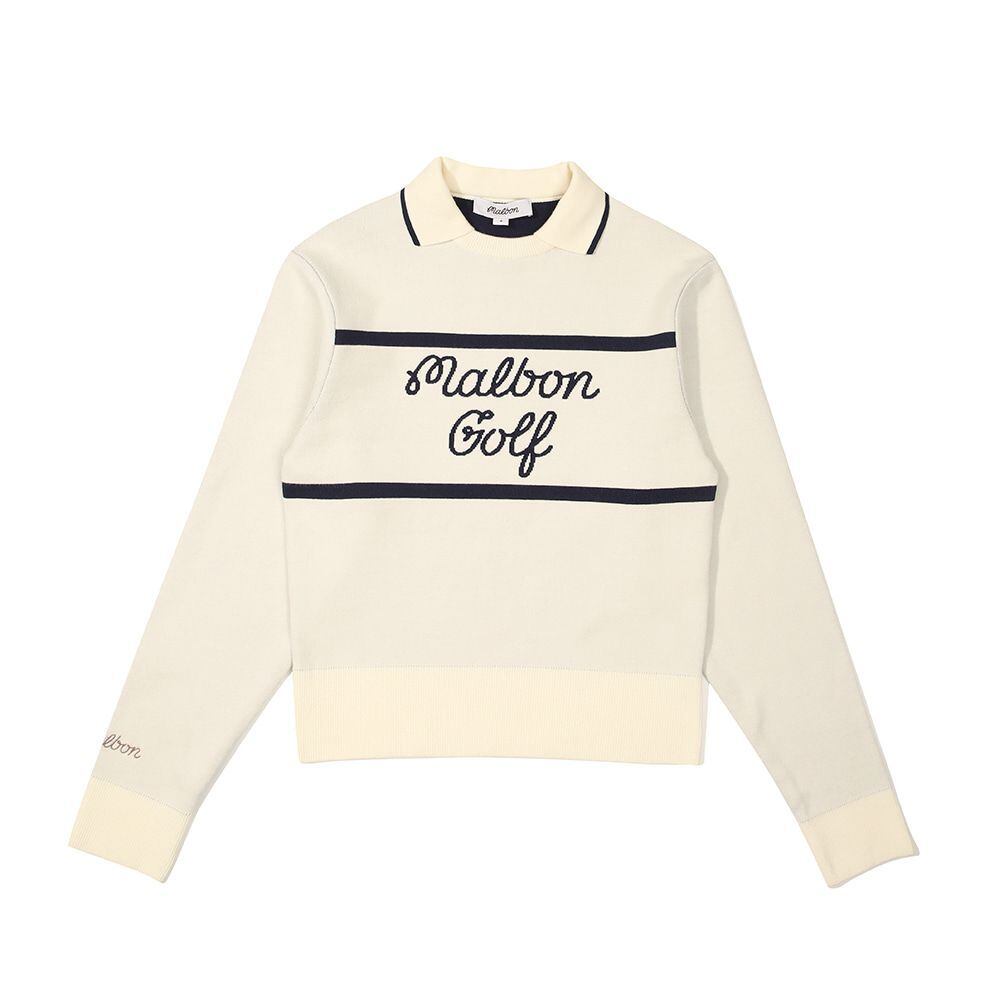 malbon golf マルボンゴルフ 長いセーター ポロニット 長袖 新作 レディース スポーツ カジュアル 防寒 暖かい ベージュ ネイビー