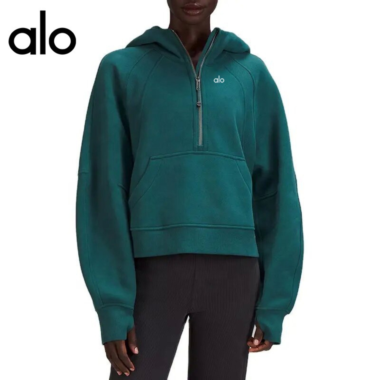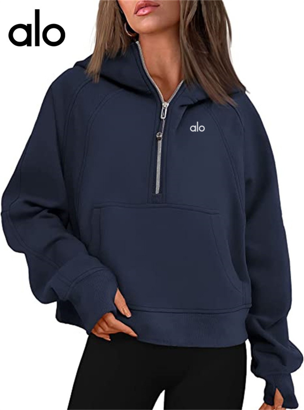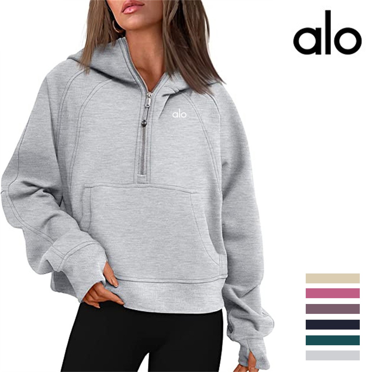 Alo Yoga アローヨガ パーカー 裹起毛 レディース ゆったり スウェット ハーフジップ スポーツ 旅行 グレー ネイビー グリーン パープル ピンク カーキ