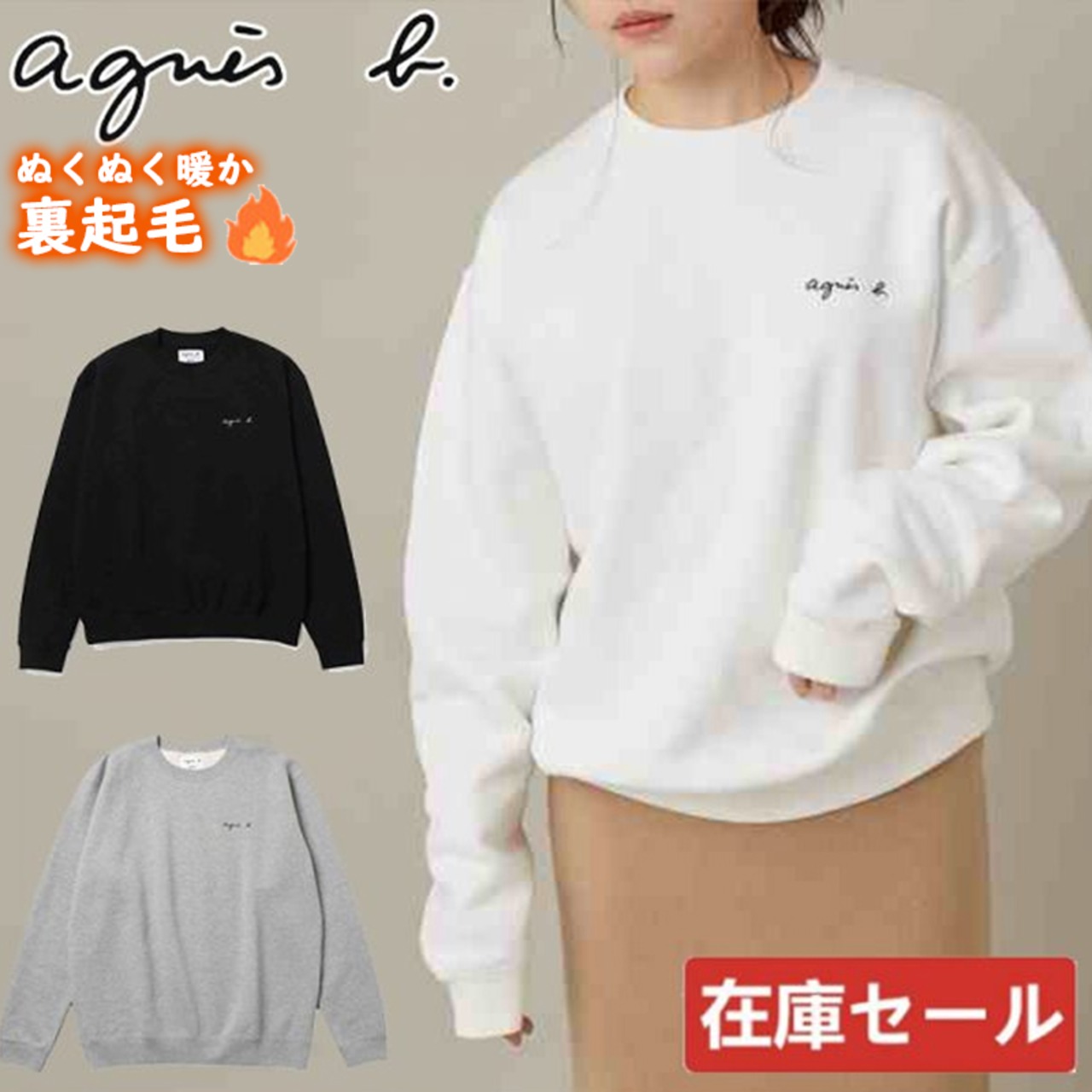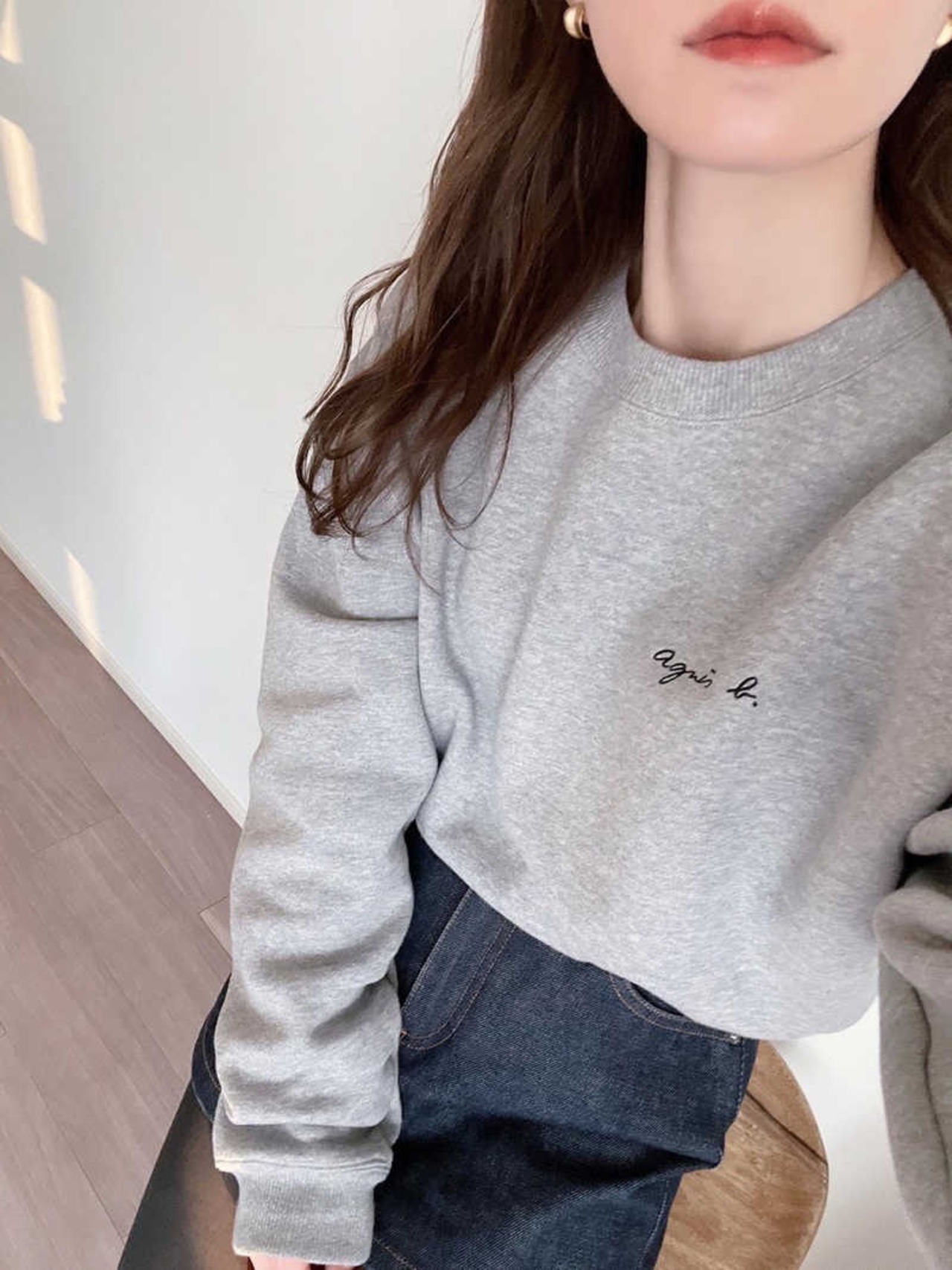 agnes b. paleesija アニエスベー スウェット ロゴ 春秋 クルーネック 長袖 シンプル無地 カジュアル レディース 長袖 ブラック ホワイト グレー 3色