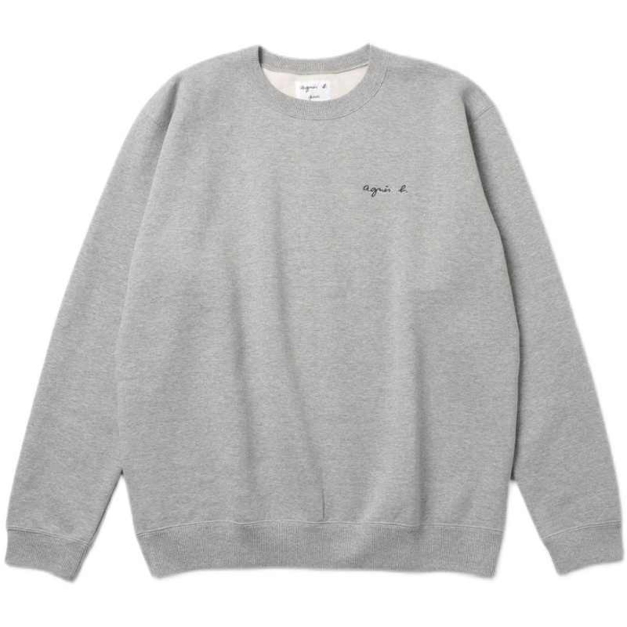 agnes b. paleesija アニエスベー スウェット 裹起毛 ロゴ 防寒 クルーネック 秋冬 長袖 シンプル無地 カジュアル メンズ ブラック グレー