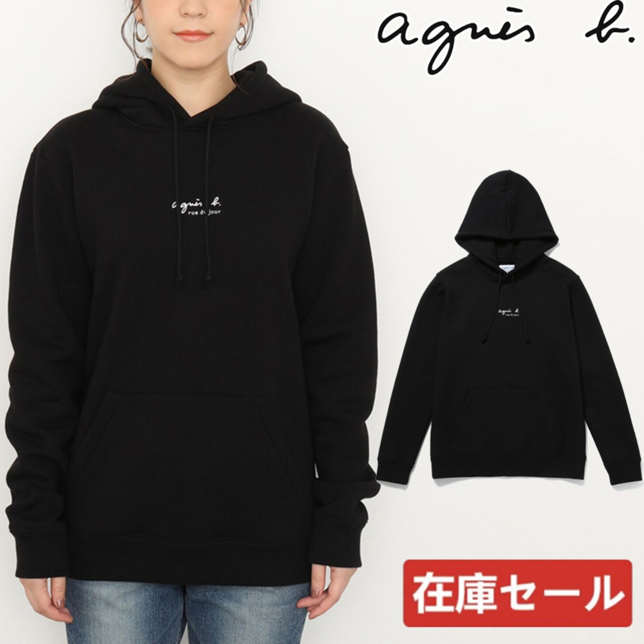 agnes b. アニエスベー パーカー ロゴ 春秋 クルーネック 長袖 シンプル無地 カジュアル レディース ブラック