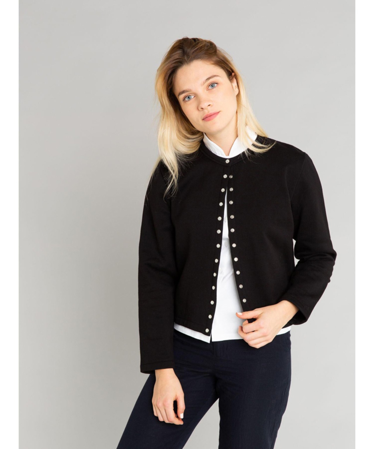 agnes b. paleesija アニエスベー カーディガンプレッション ロゴ 2024 春秋 ボタンデザイン ショートコート シンプル無地 カジュアル レディース 長袖 ブラック