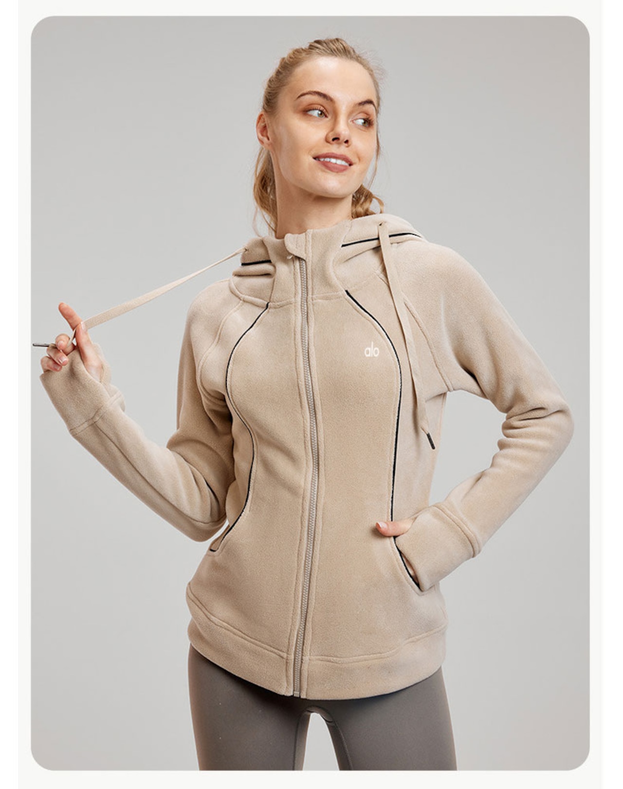 Alo Yoga アロヨガ ジャケット フィットネス トレーニング 秋冬 裹起毛 ヨガ フード付き トップス 防寒 ランニング ジッパー パーカー スポーツ 長袖 レディース ネイビー カーキ ホワイト