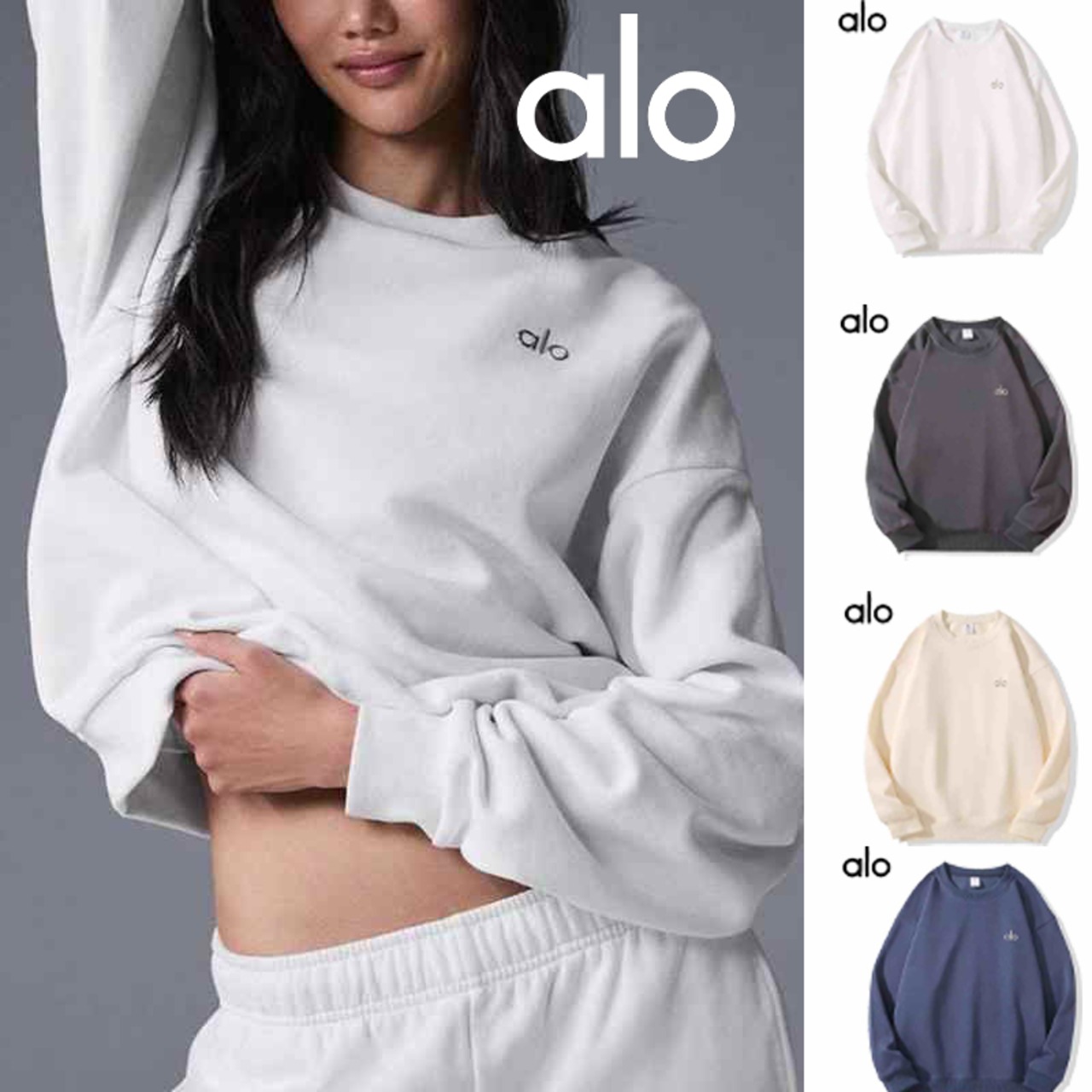 Alo Yoga のレディースクルーネックスウェットは、シンプルで洗練されたデザインが魅力のアイテムです。