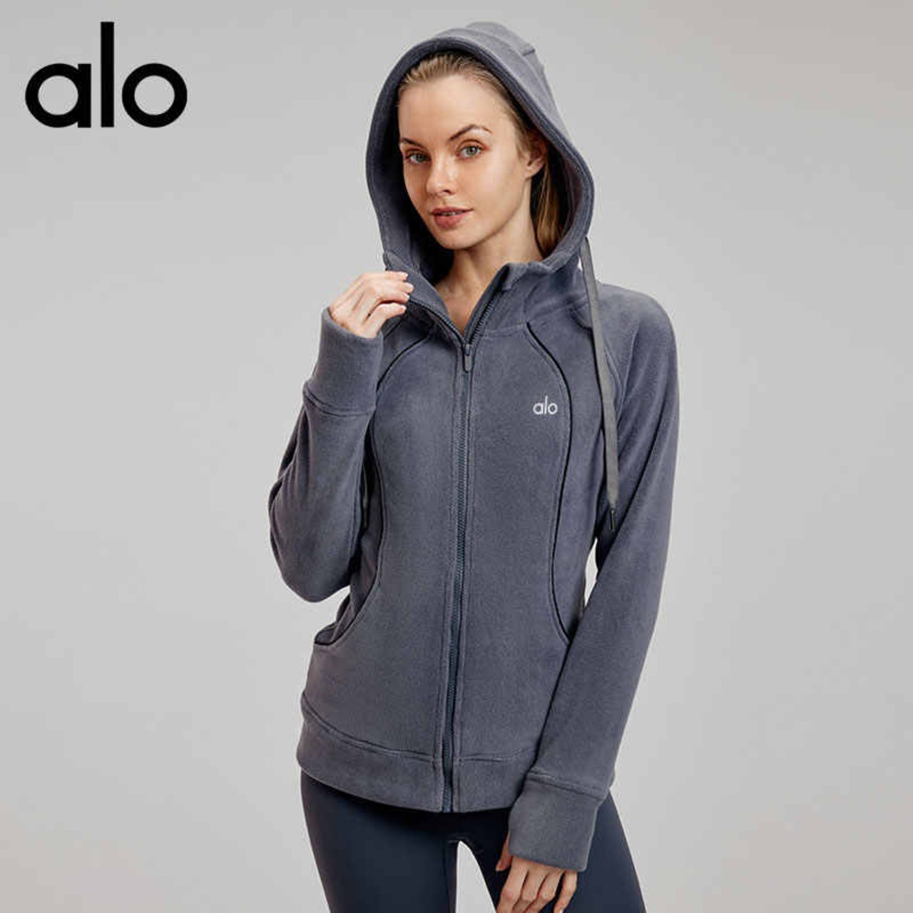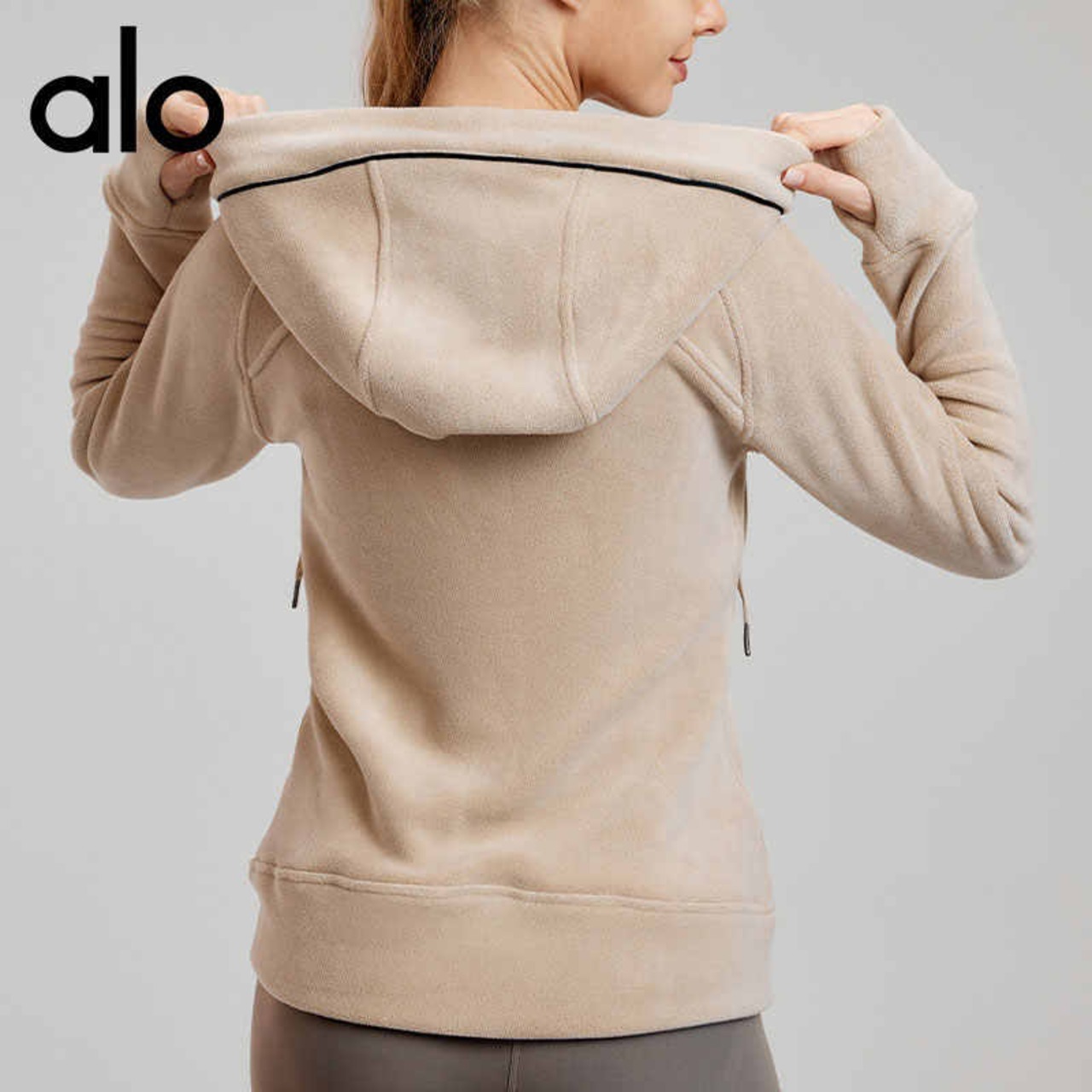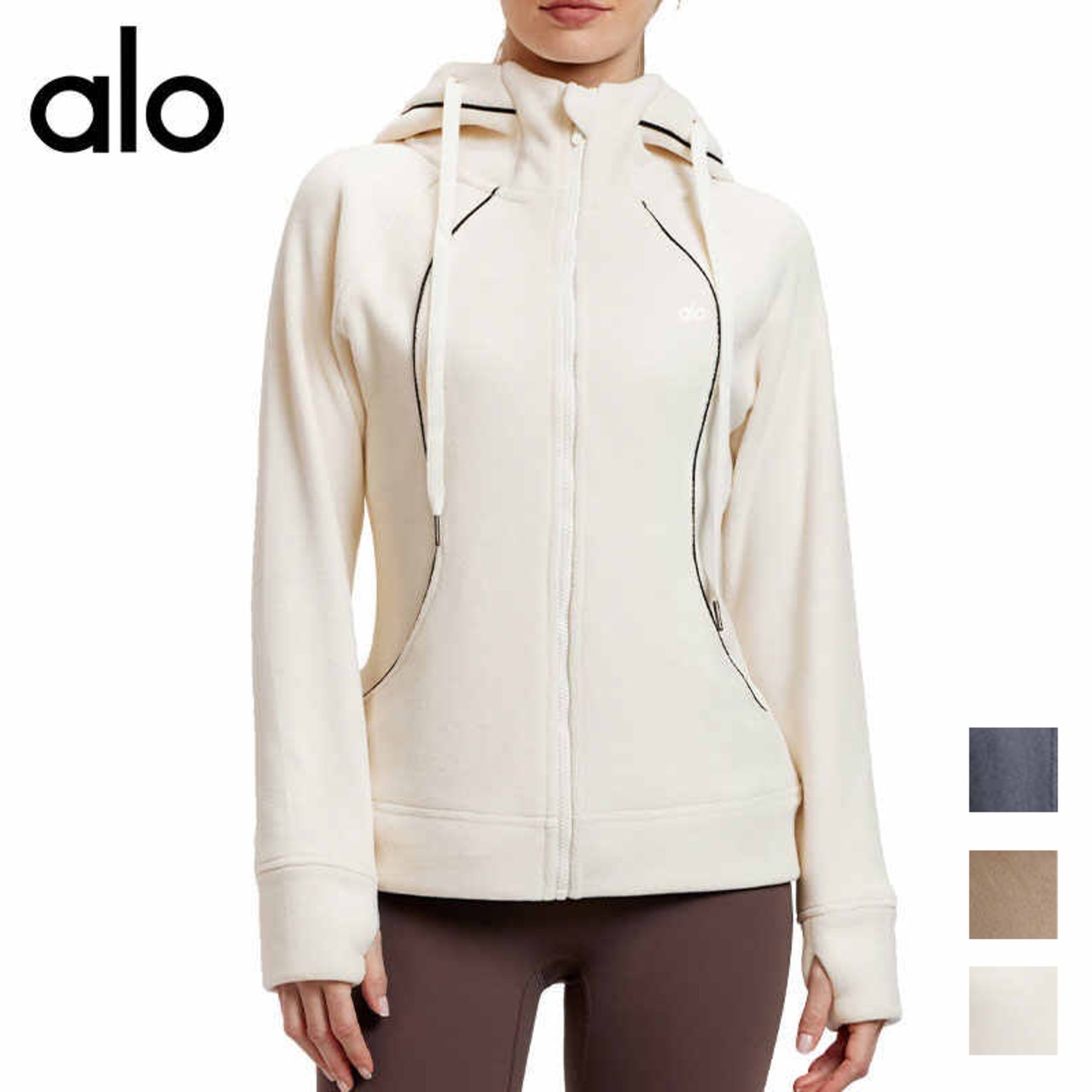 Alo Yoga アロヨガ ジャケット フィットネス トレーニング 秋冬 裹起毛 ヨガ フード付き トップス 防寒 ランニング ジッパー パーカー スポーツ 長袖 レディース ネイビー カーキ ホワイト