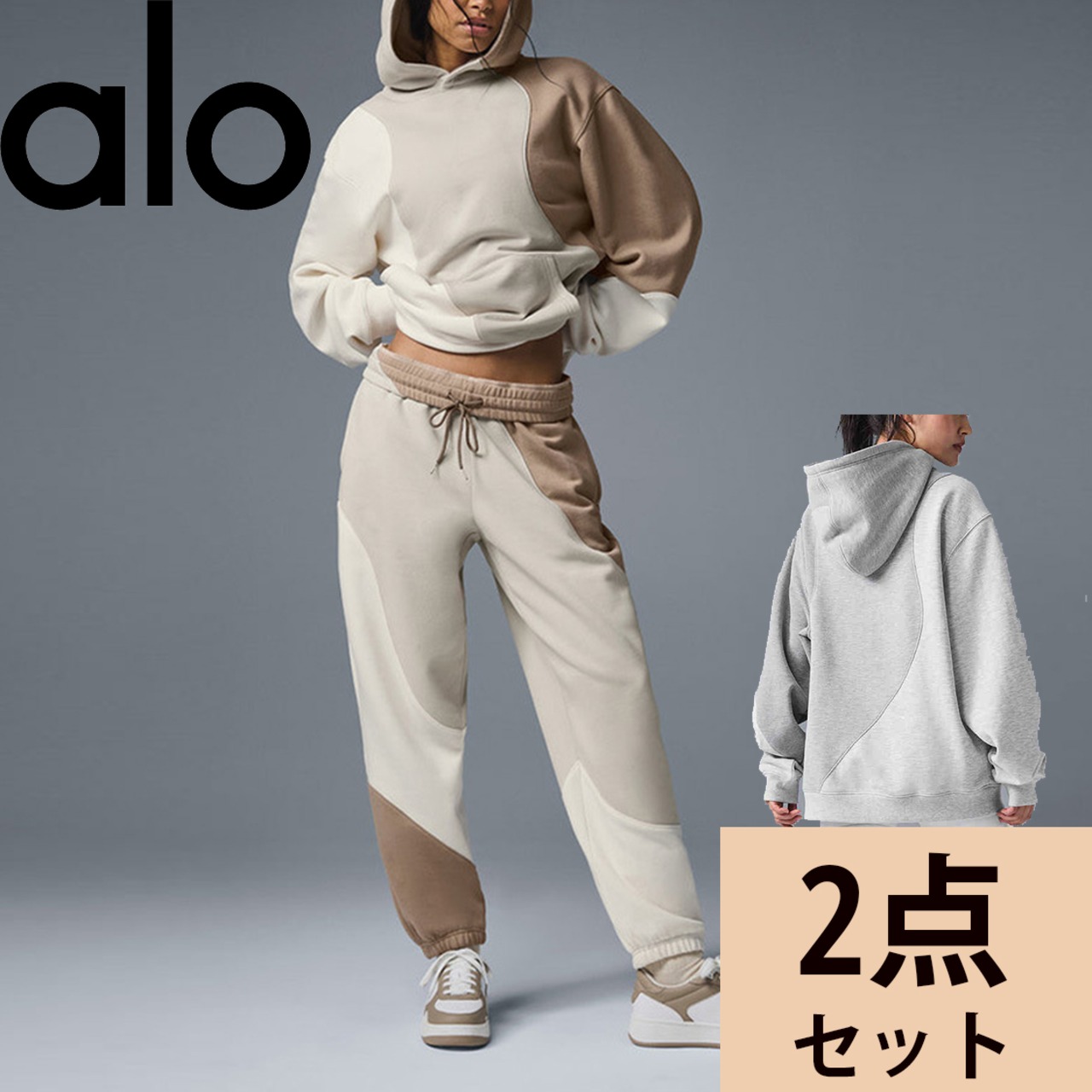 Alo Yoga アロヨガ 上下セット フィットネス ウェア パーカー+パンツ レディース ヨガ タイト トレーニング 長袖 バイカラー カジュアル おしゃれ ランニング スポーツフィットネス カーキ グレー