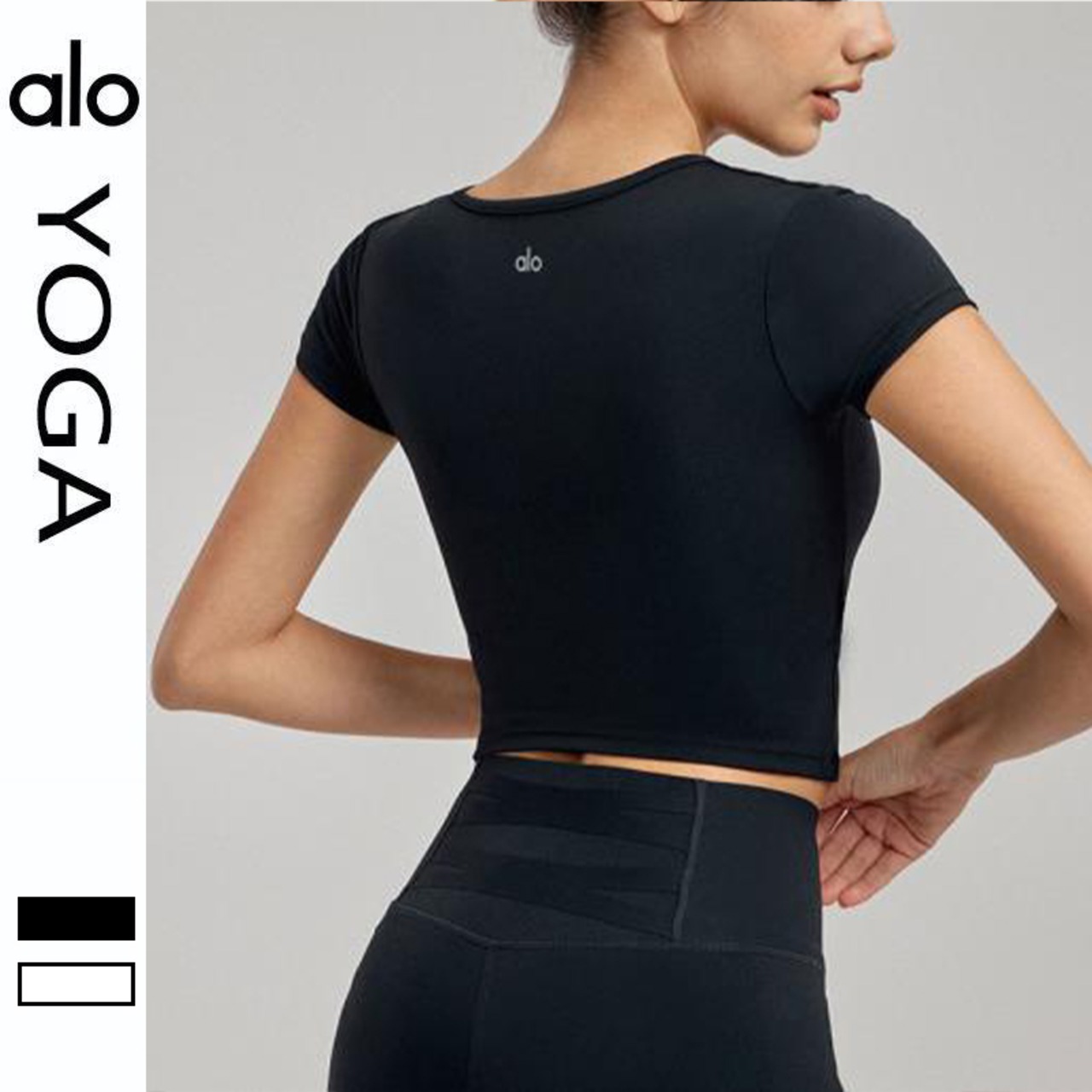 Alo Yoga アロヨガ Tシャツ シンプル無地 カジュアル レディース スポーツウェア 通勤 ブラック ホワイト