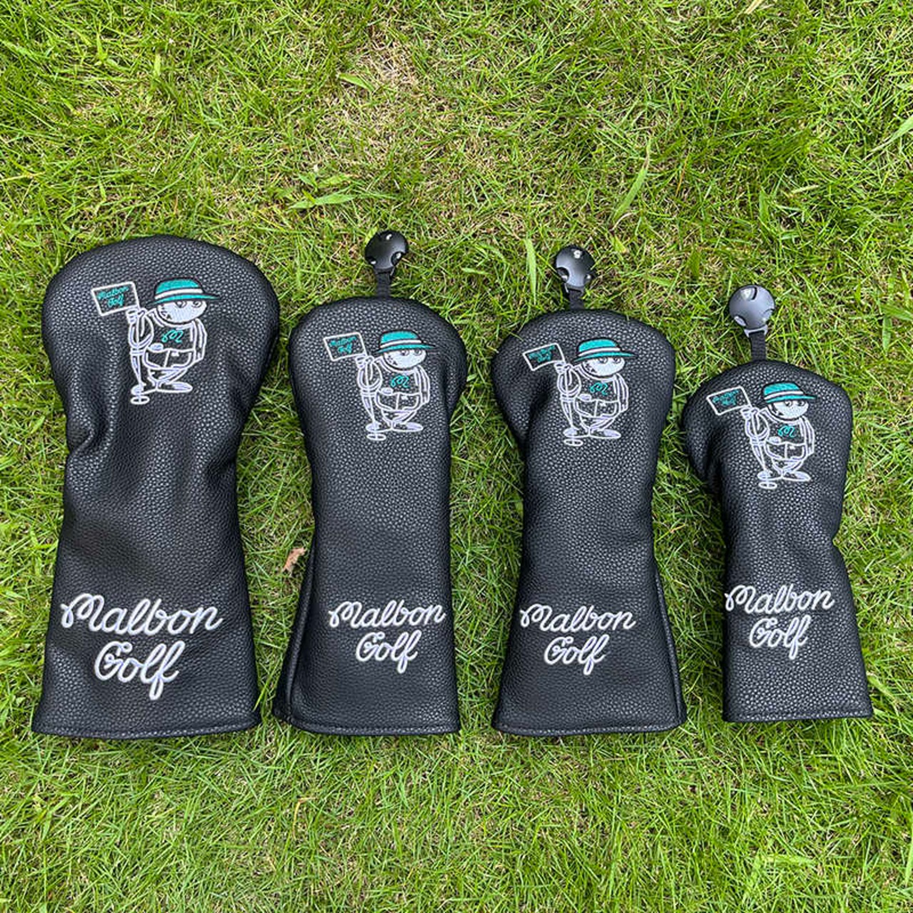 Malbon Golf マルボンゴルフ クラブ ヘッドカバー 1+3+5+UT 4点セット アイアン用 ドライバー用 ゴルフ ブラック 人気商品