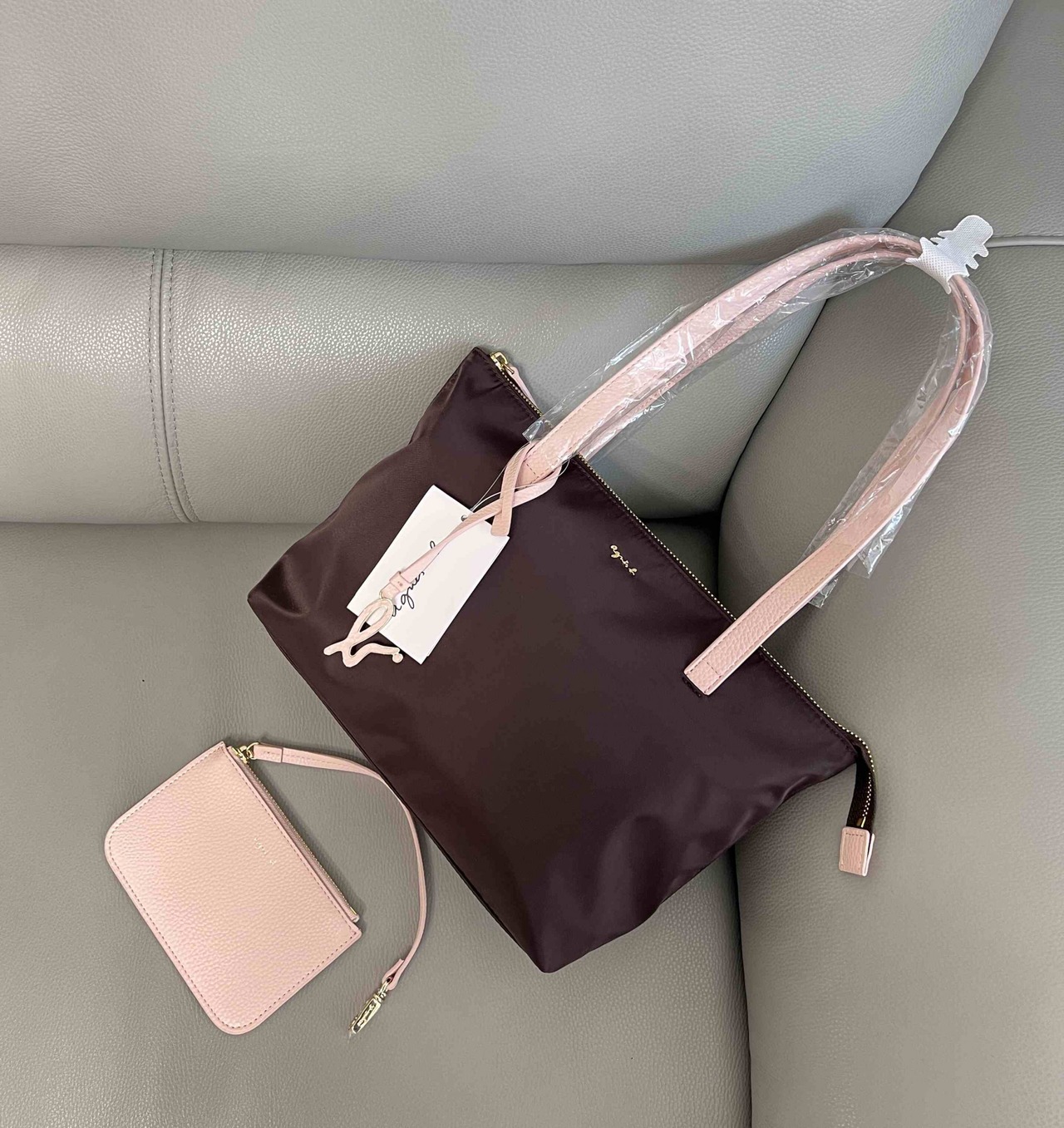 【人気商品】agnes b. アニエスベー ナイロン トートバッグ ポーチ付き シンプル 大容量 軽量 S L カジュアル 通勤通学 旅行 ブラウン