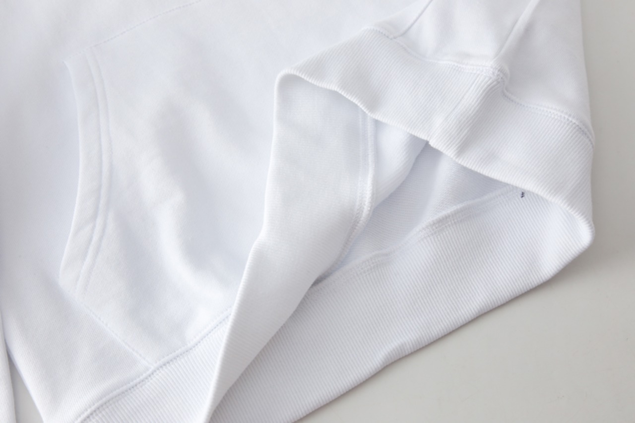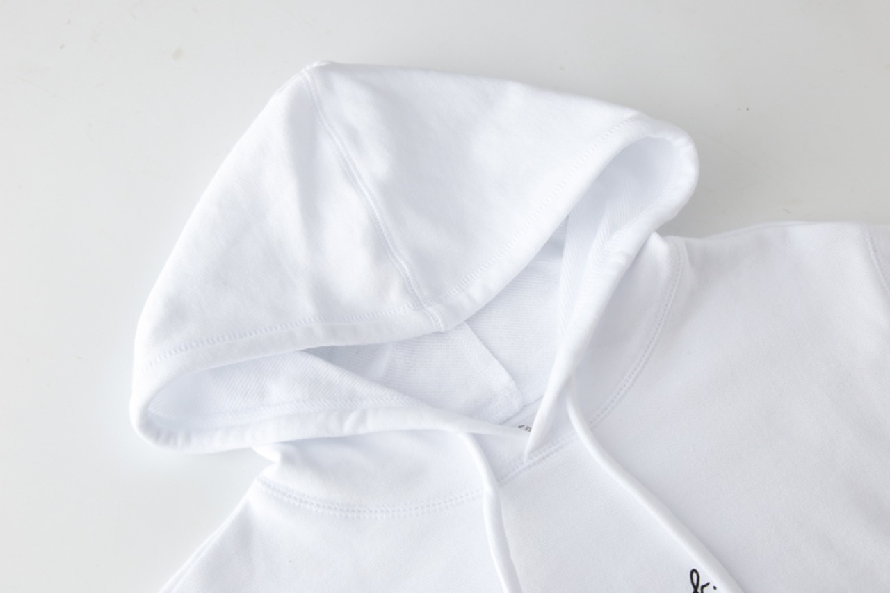 フロントに小さくブランドロゴをプリントした、シンプルなプルパーカー。