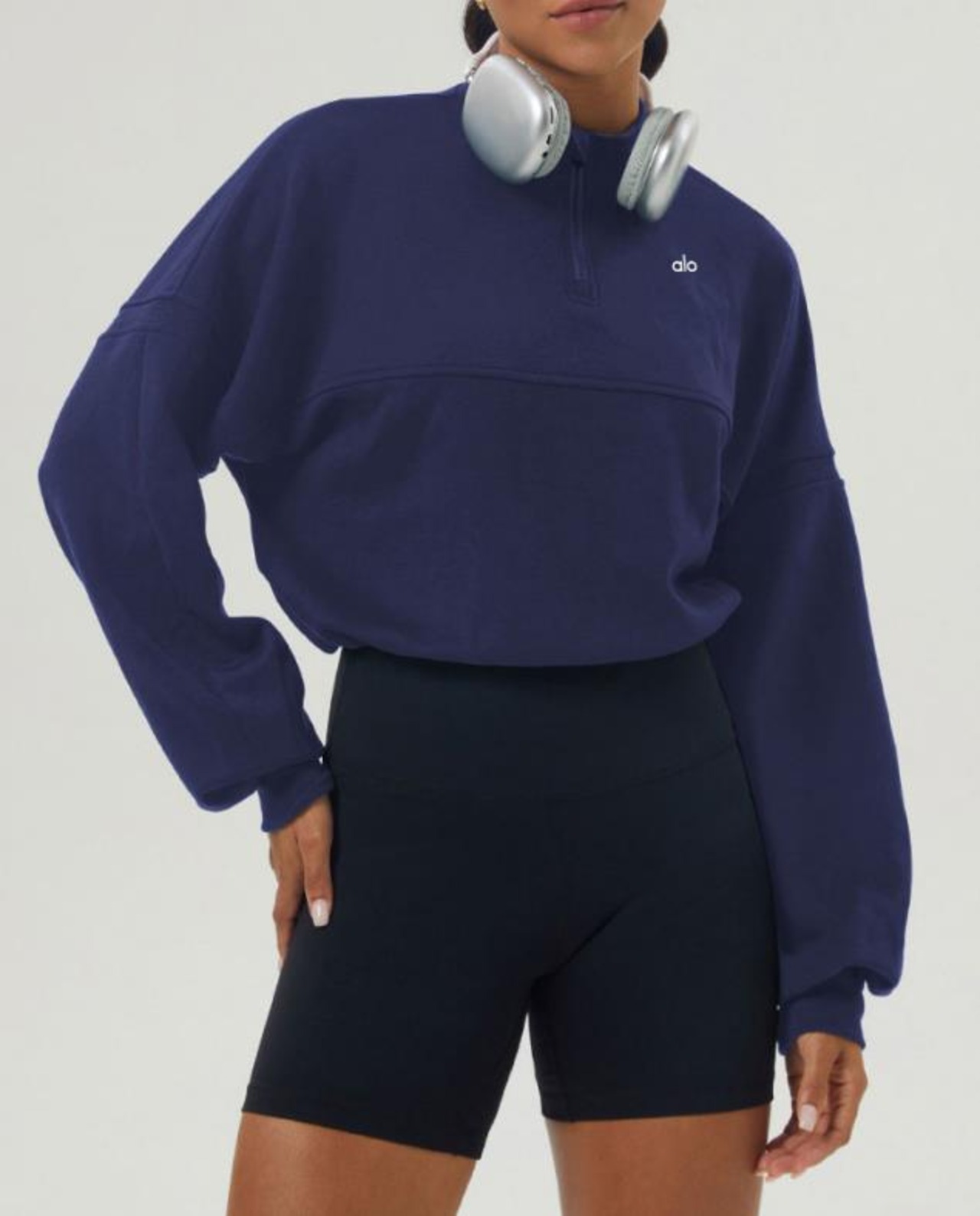 Alo Yoga のハーフジップスウェットは、シンプルで洗練されたデザインが魅力のアイテムです。