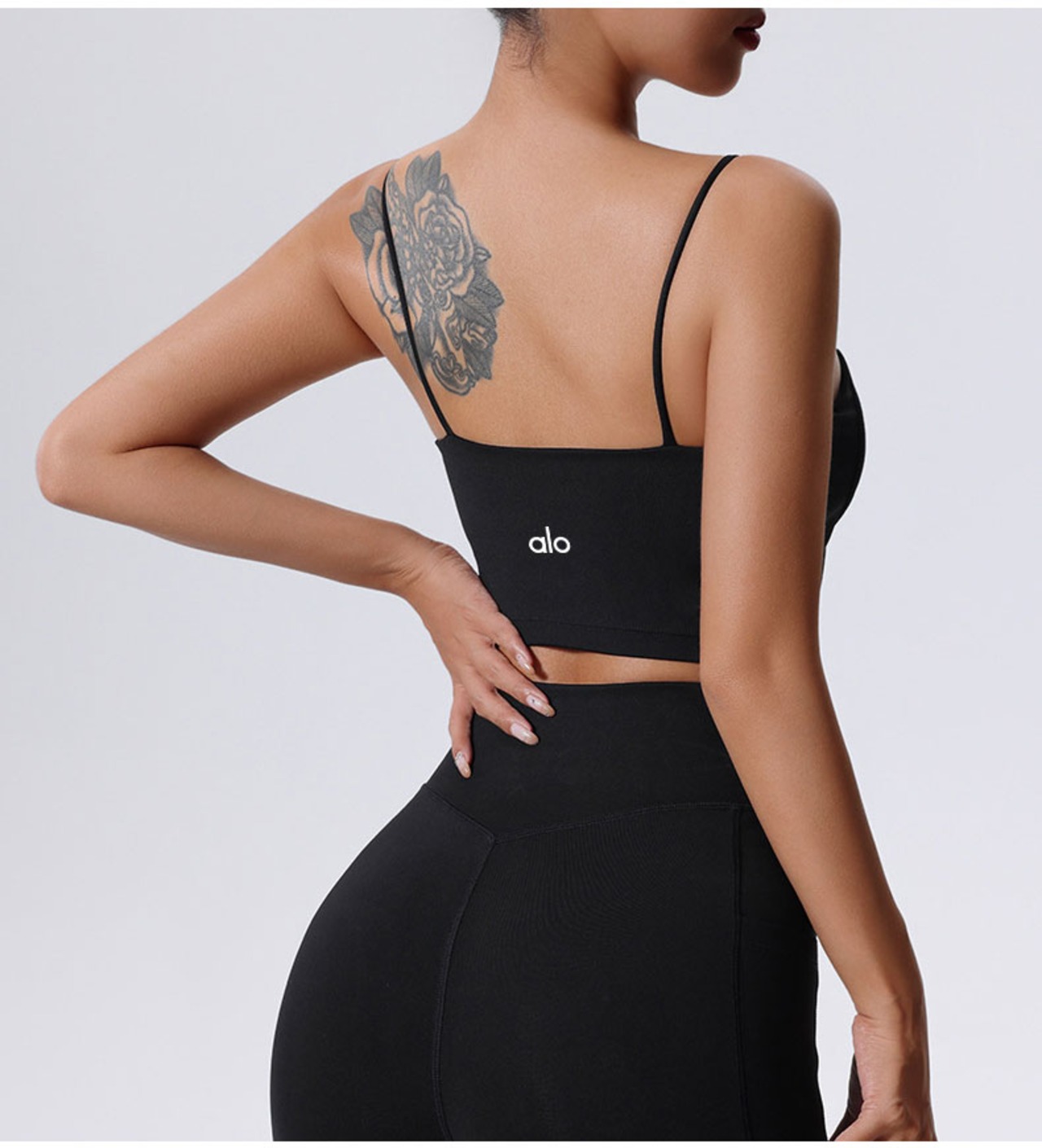 Alo Yoga アロヨガ ライトサポート スポーツブラ 揺れない クロスバック サポートブラ ヨガウェア 美胸 サポート力抜群 サポートブラ ヨガ ランニング ジョギング ダンス ブラック ネイビー