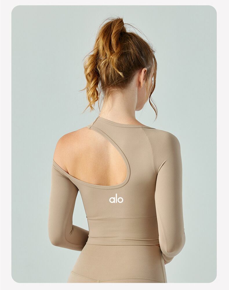 Alo Yoga アロヨガ 長袖 リブ トップス パーカー レディース スウェット ランニング トレンドデザイン フィットネス トレーニング 春夏 ヨガ カーキ ホワイト