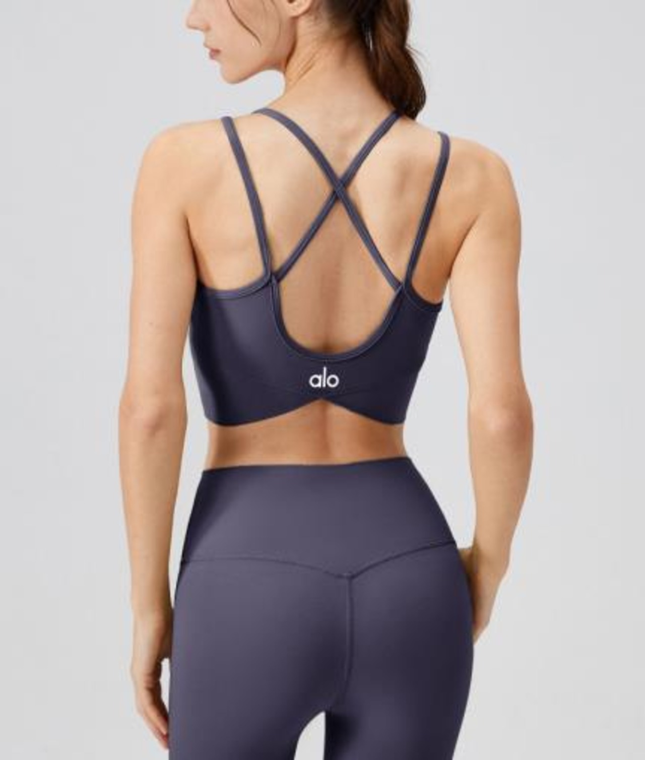 Alo Yoga アロヨガ ライトサポート スポーツブラ 揺れない クロスバック サポートブラ ヨガウェア 美胸 ブラック パープル