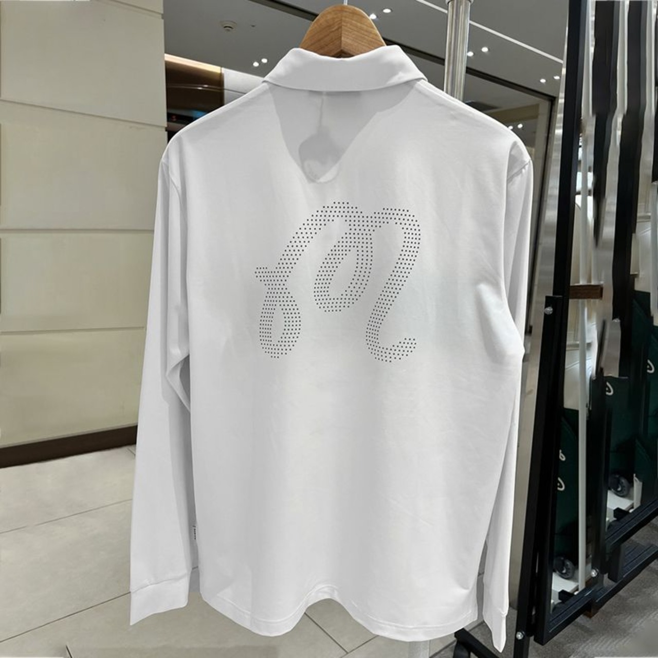MALBON GOLF マルボン ポロシャツ 長袖 カジュアル ゴルフウェア 吸汗速乾 春秋スタイル ホワイト ネイビー 2色