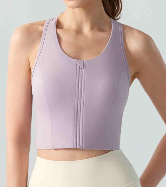 Alo Yoga アロヨガ スポーツブラ 揺れない 前開き レディース シームレス ランニング シームレス クロスバック フロントファスナー ヨガ ブラウン パープル