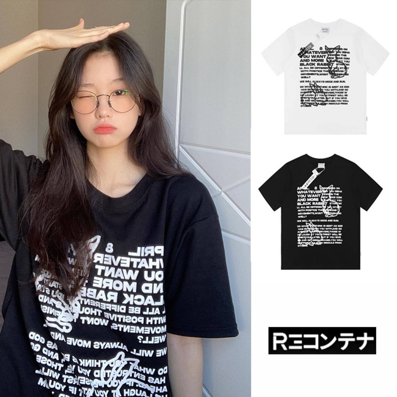 REコンテナ リコンテナ Tシャツ 韓国 ファッション 人気 レディース 春夏 ブラック ホワイト