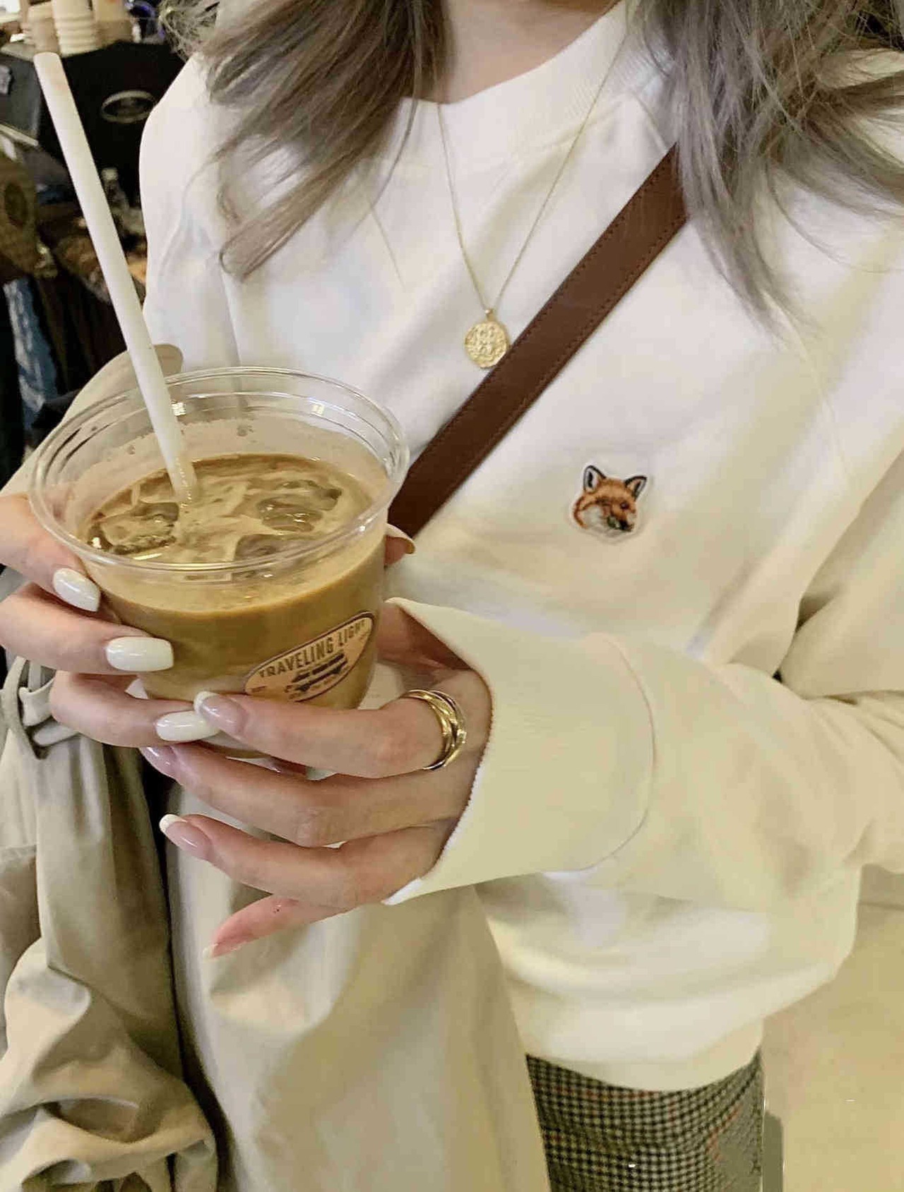 胸元には可愛らしい狐の刺繍が施され、カジュアルなスタイルに華を添えます。