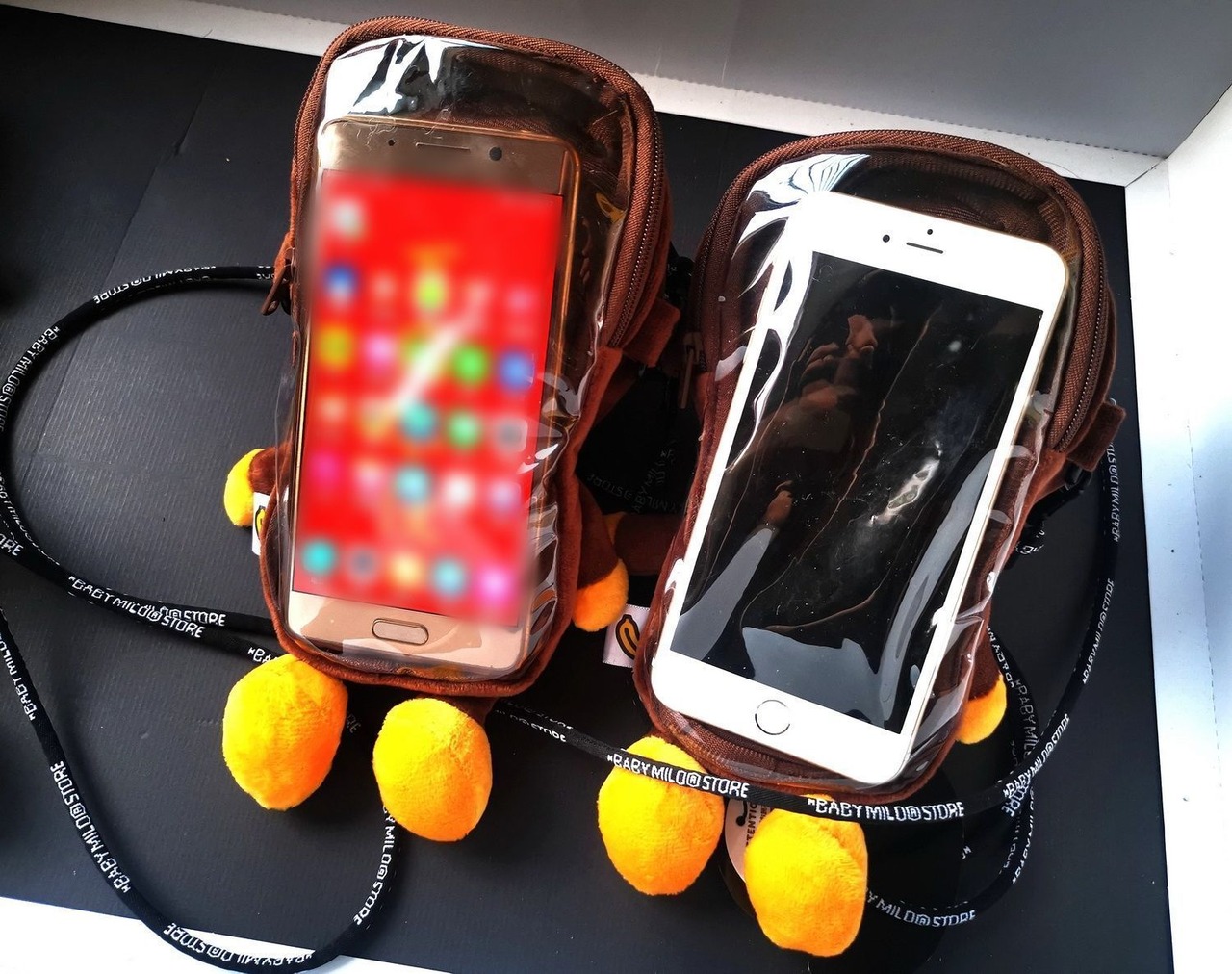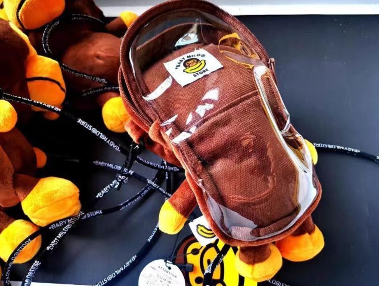BABY MILOの姿でデザインされたバック,裏面に携帯電話を入れることができます。