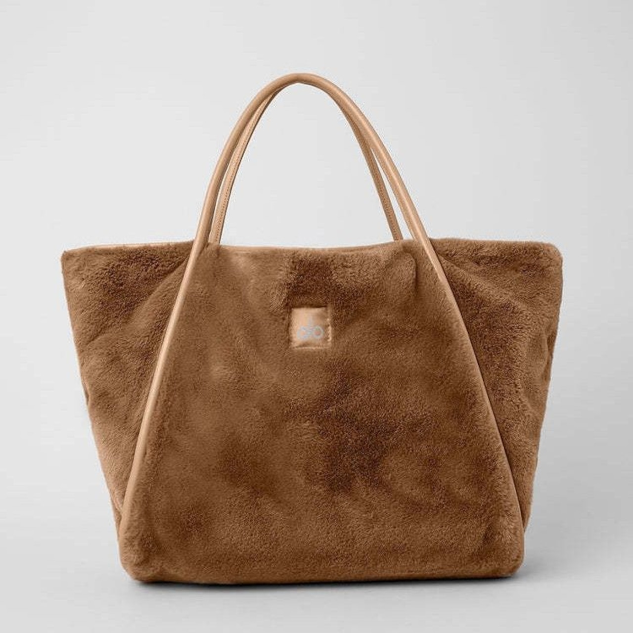 Alo Yoga アロヨガ ヨガバッグ トートバッグ A4収納可 ファー ジム 秋冬 ピラティス 大容量 レディース メンズ バッグ ブラック ホワイト ベージュ 3色
