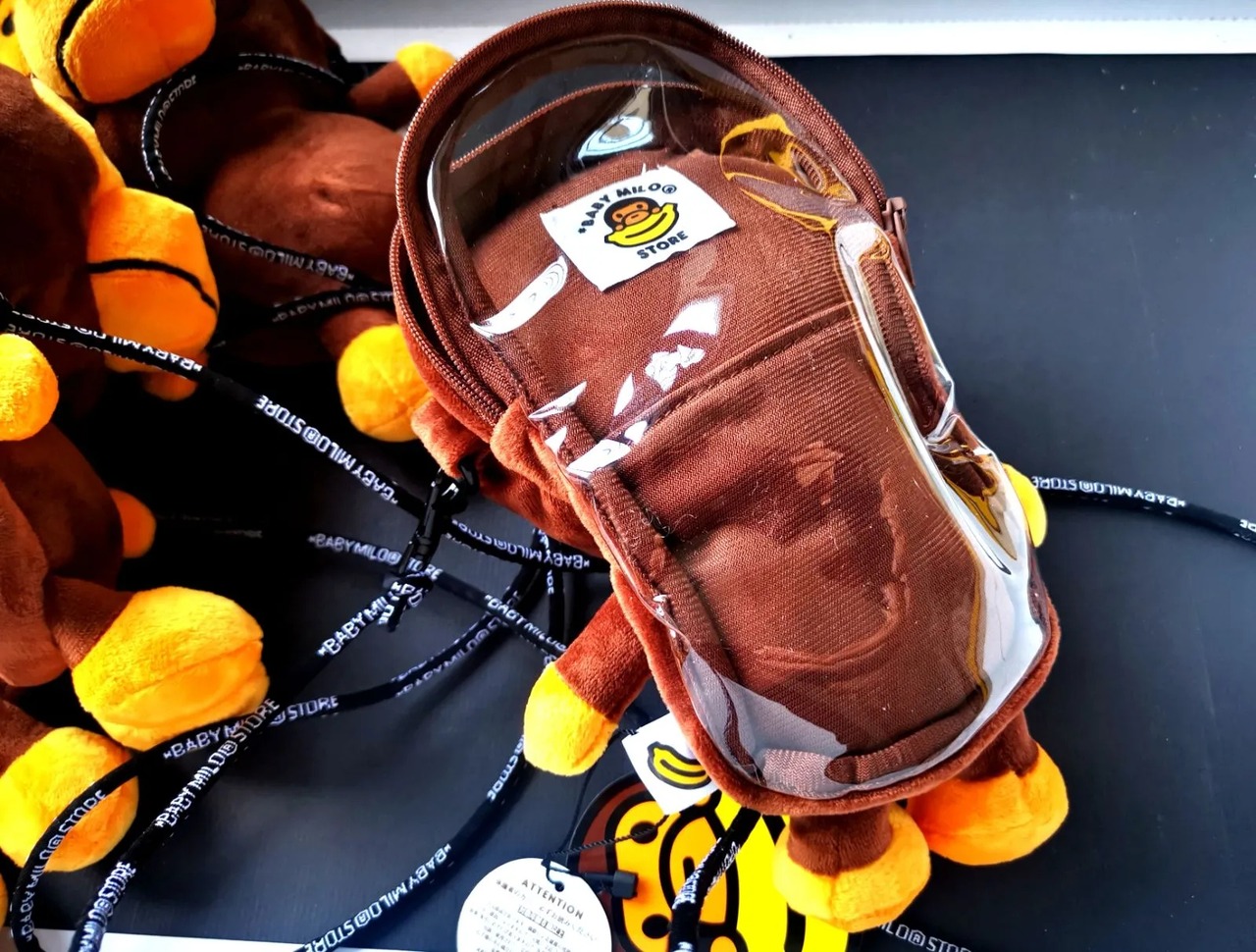BABY MILOの姿でデザインされたバック,裏面に携帯電話を入れることができます。子供用クロスバックでもあります。