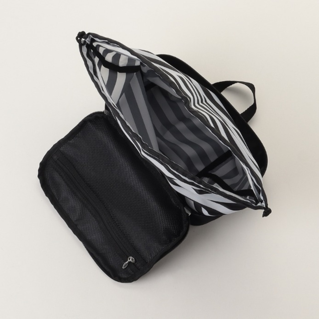 内側のメッシュポケットにビニール袋やウェットティッシュなどを入れられるのも嬉しいポイントです。