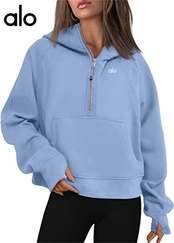 Alo Yoga アローヨガ パーカー レディース 裹起毛 ゆったり スウェット ハーフジップ スポーツ 旅行 ブラック ホワイト グリーン ブルー ピンク