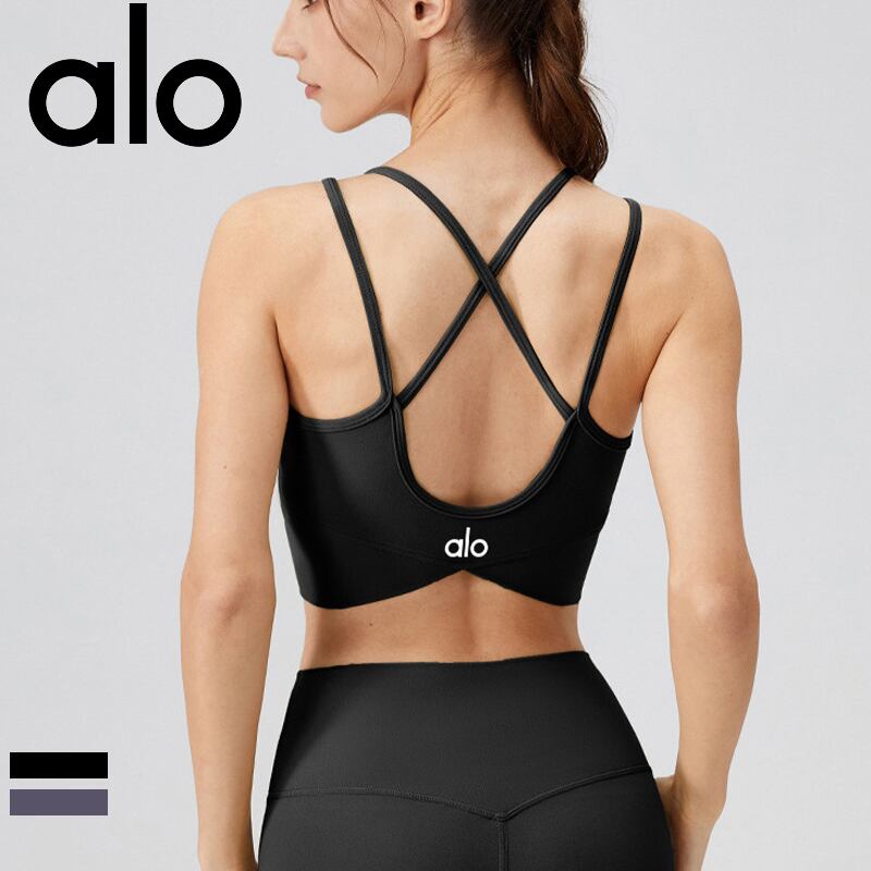 Alo Yoga アロヨガ ライトサポート スポーツブラ 揺れない クロスバック サポートブラ ヨガウェア 美胸 ブラック パープル
