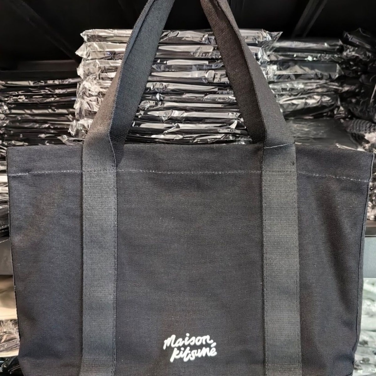 MAISON KITSUNE メゾンキツネ トートバッグ 狐のイラスト 大容量 おしゃれ バッグ カジュアル デイリー ショッピング 旅行 人気 ブラック 個性派
