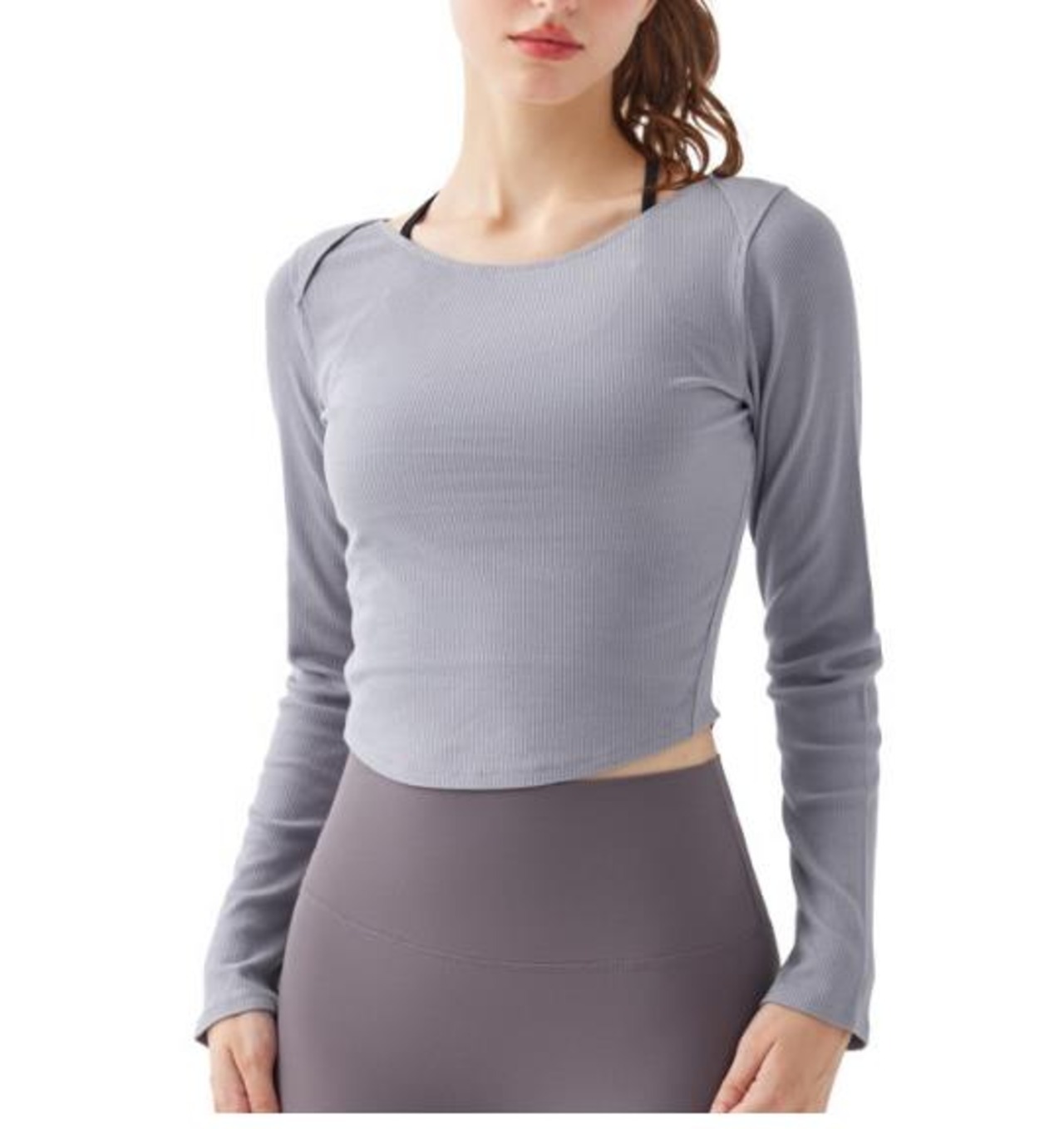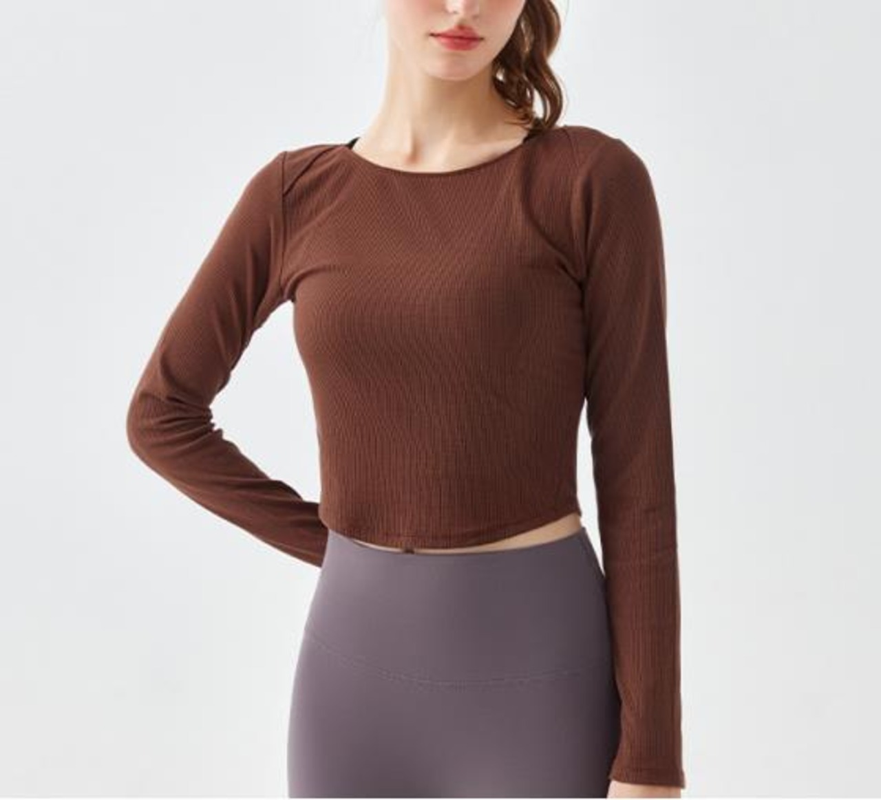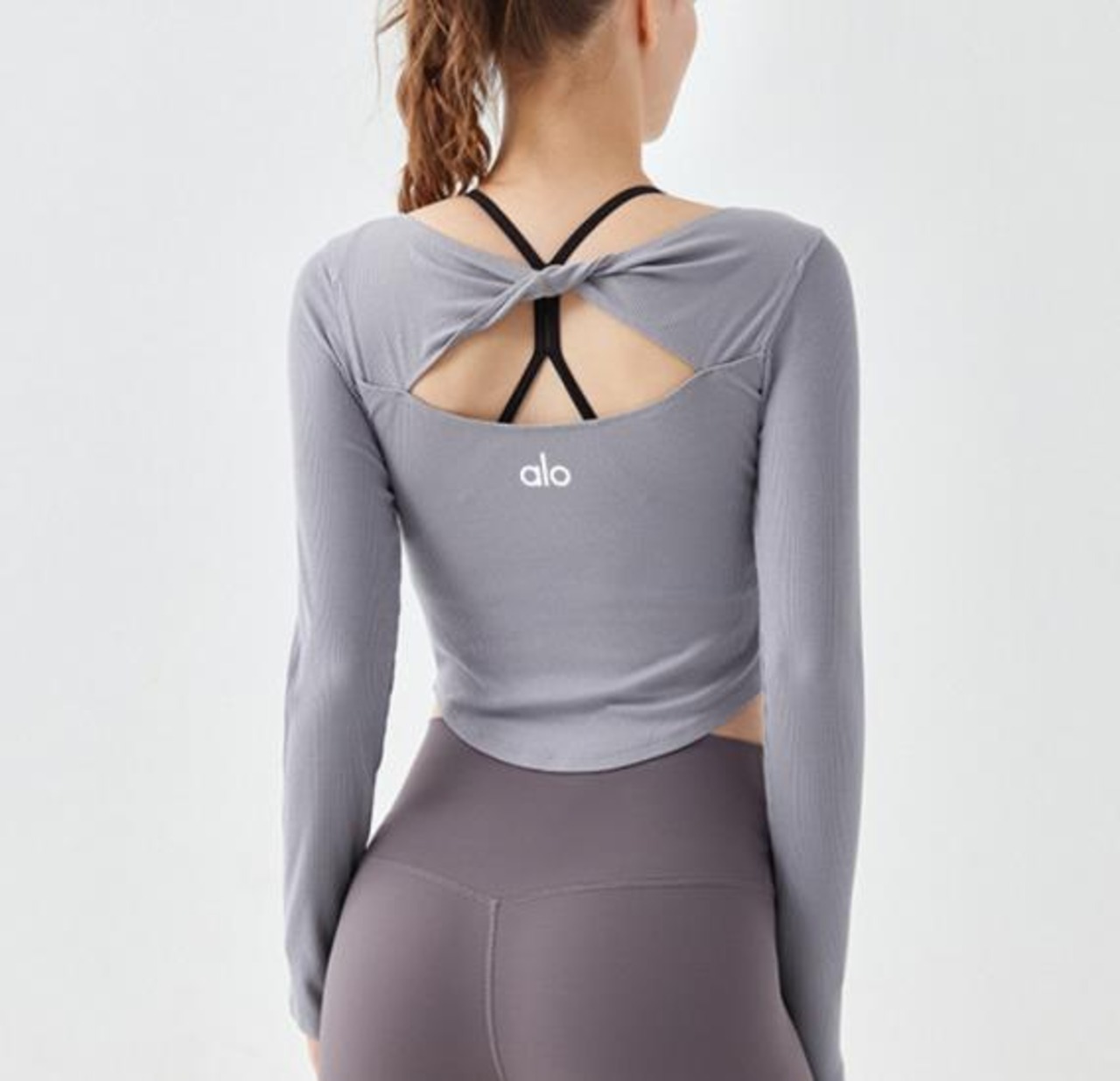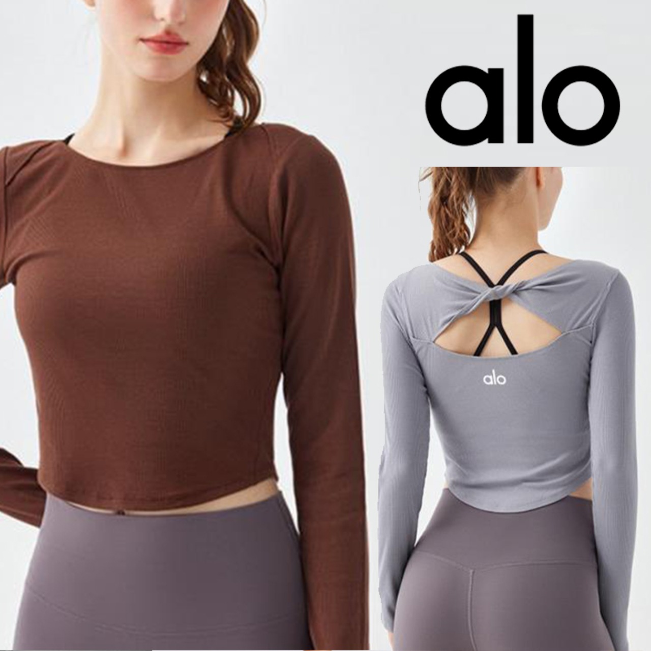 Alo Yoga アロヨガ 長袖 リブ トップス パーカー ブラウン グレー レディース スウェット ランニング トレンドデザイン フィットネス トレーニング 春夏 ヨガ