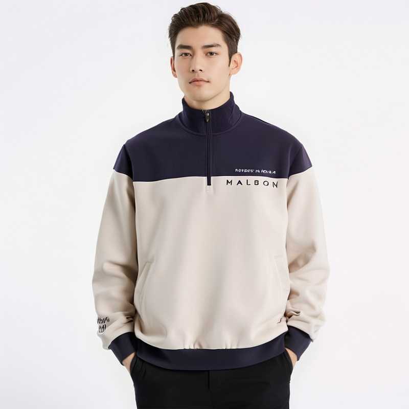 Malbon Golf マルボンゴルフ ハーフジップブルゾン メンズ トップス ゴルフジャケット カーキ グリーン ネイビー シンプル カジュアル