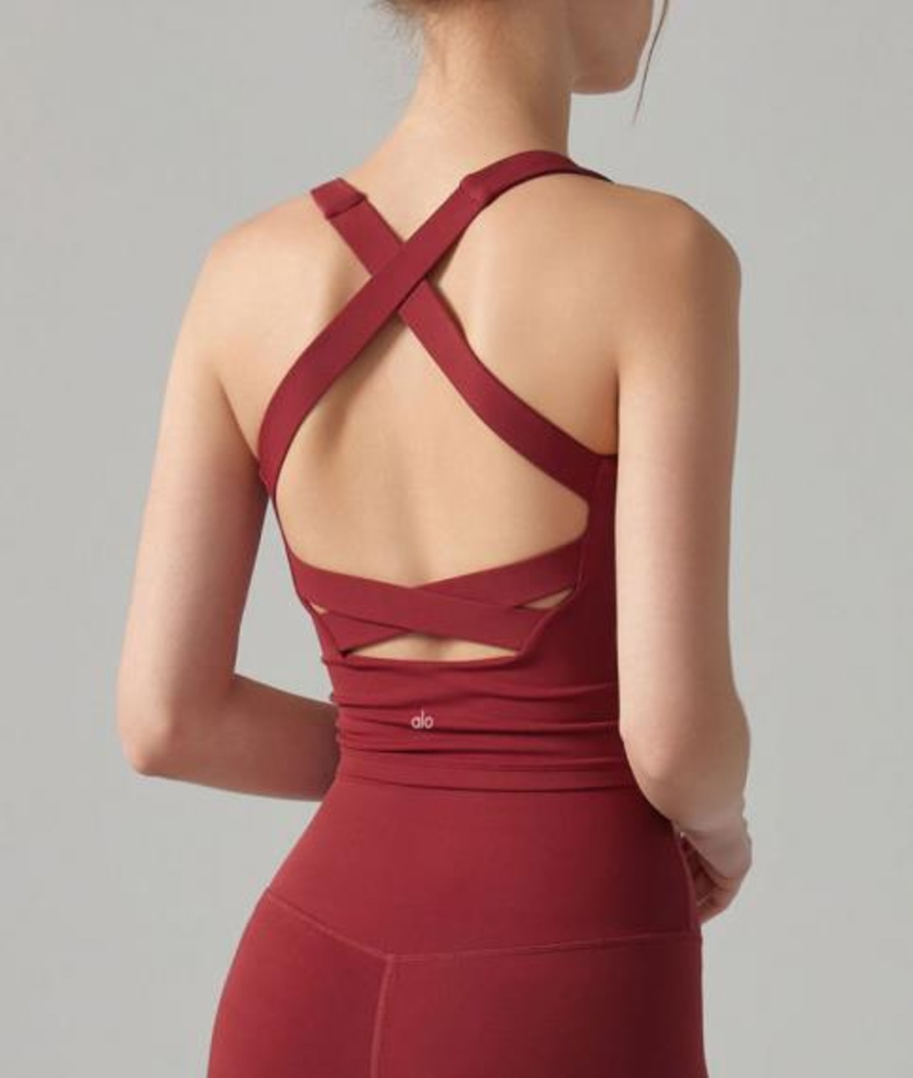 Alo Yoga アロヨガ トップス トレーニング カップ付き タンクトップ ブラトップ キャミソール ブラトップ ホットヨガ ヨガブラ レッド