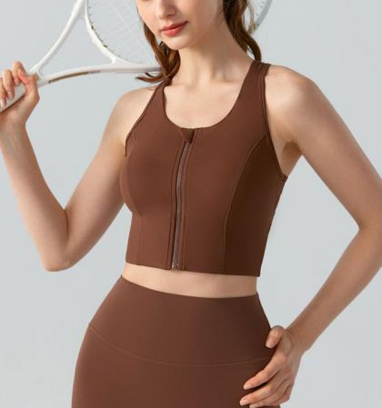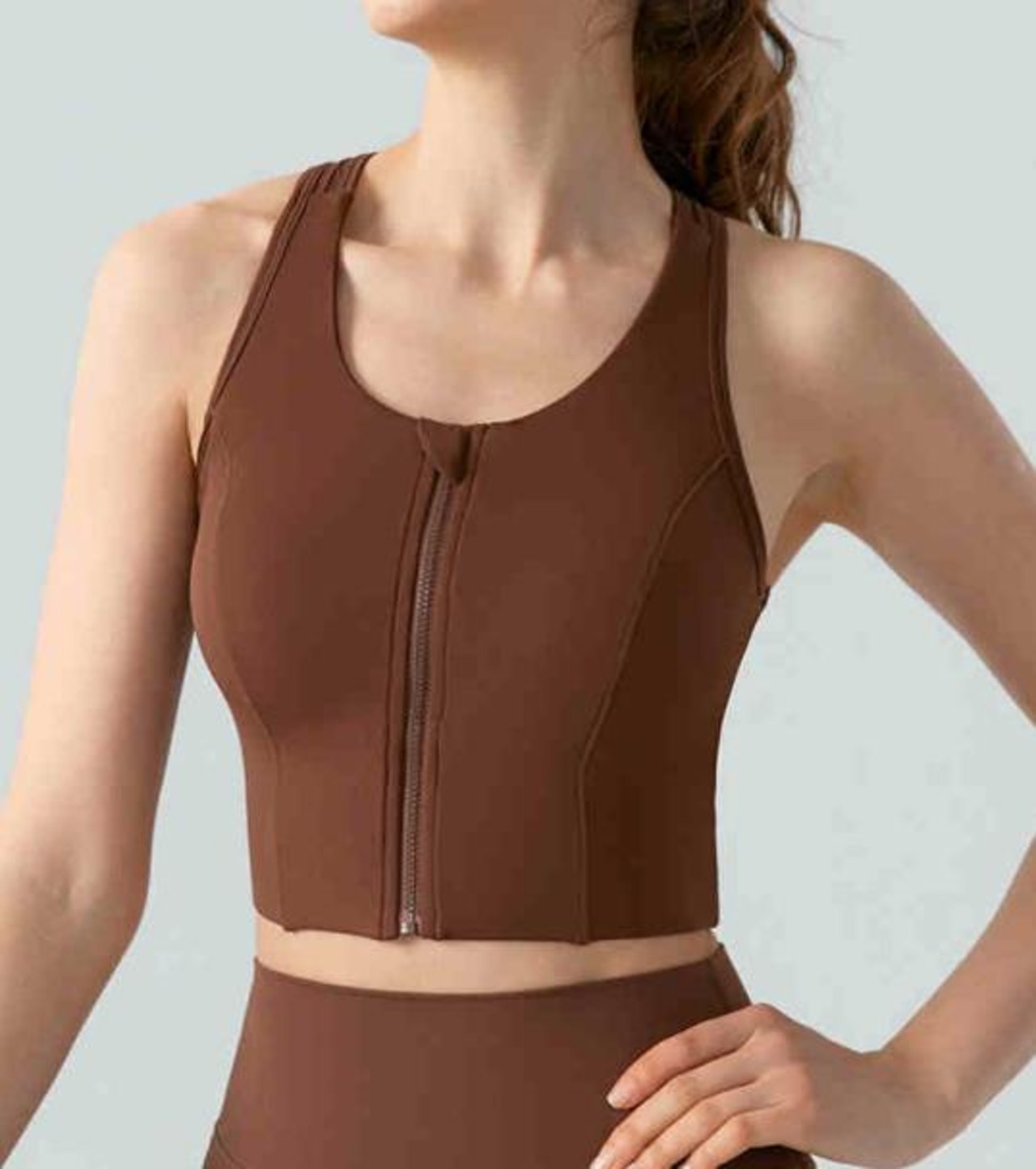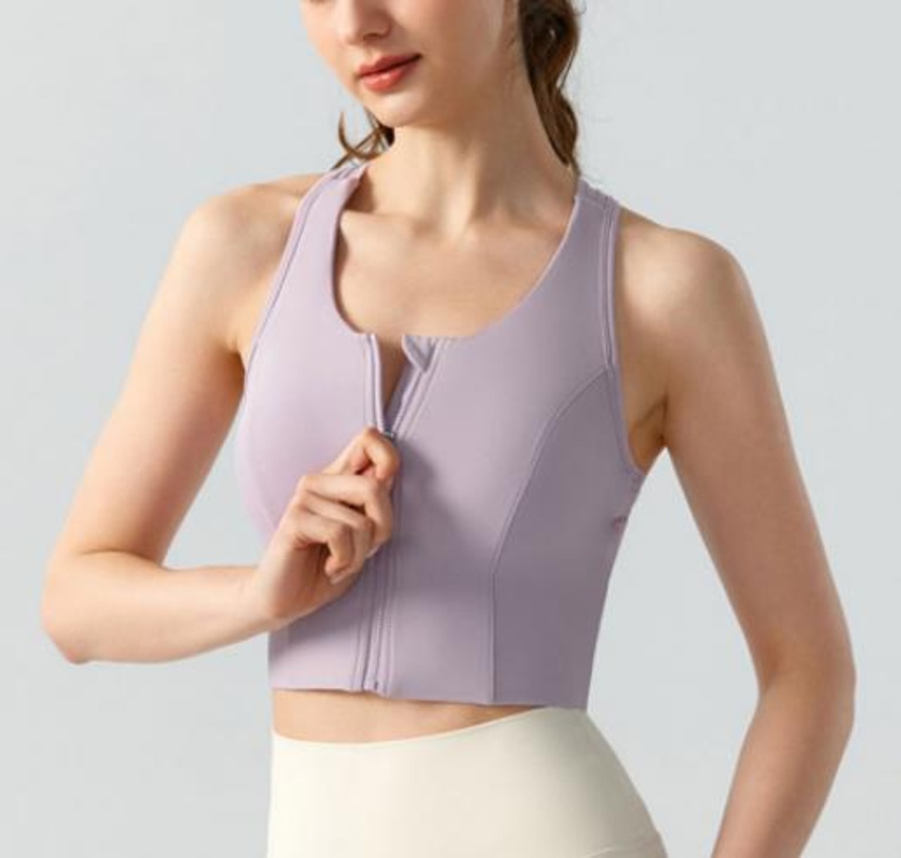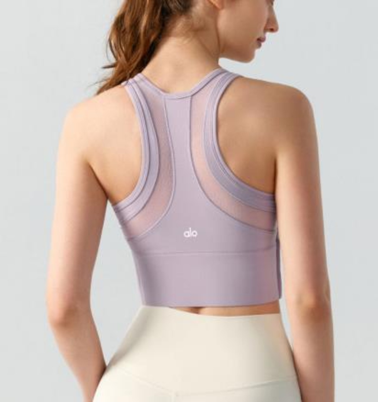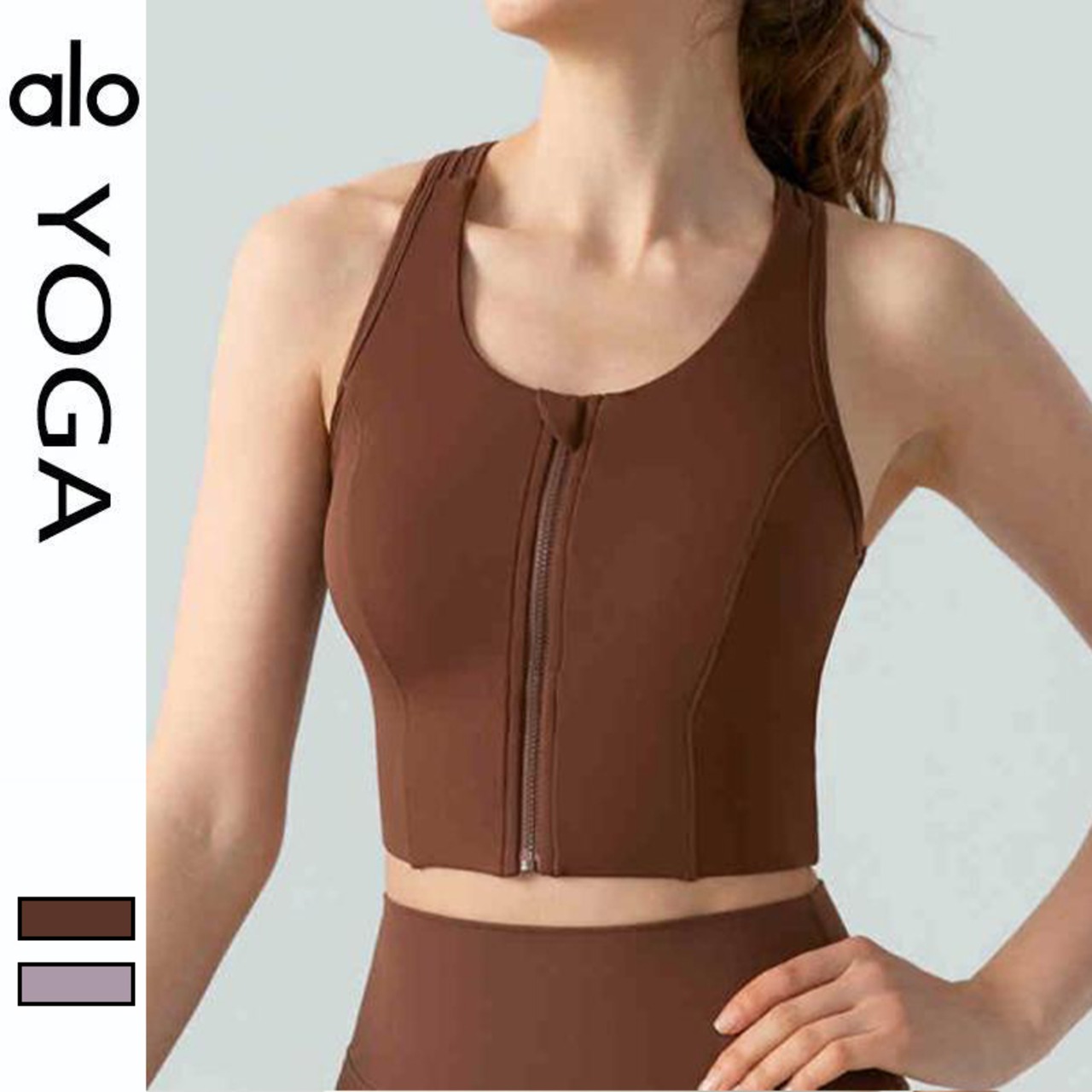 Alo Yoga アロヨガ スポーツブラ 揺れない 前開き レディース シームレス ランニング シームレス クロスバック フロントファスナー ヨガ ブラウン パープル