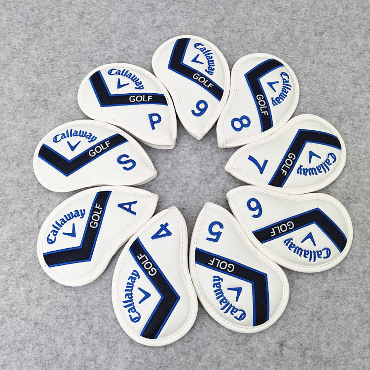 CALLAWAY GOLF キャロウェイゴルフ アイアンカバー マグネット吸着 ヘッドカバー9枚セット ホワイト×ブルー 送料無料 大人気 ゴルフクラブ アクセサリー 保護