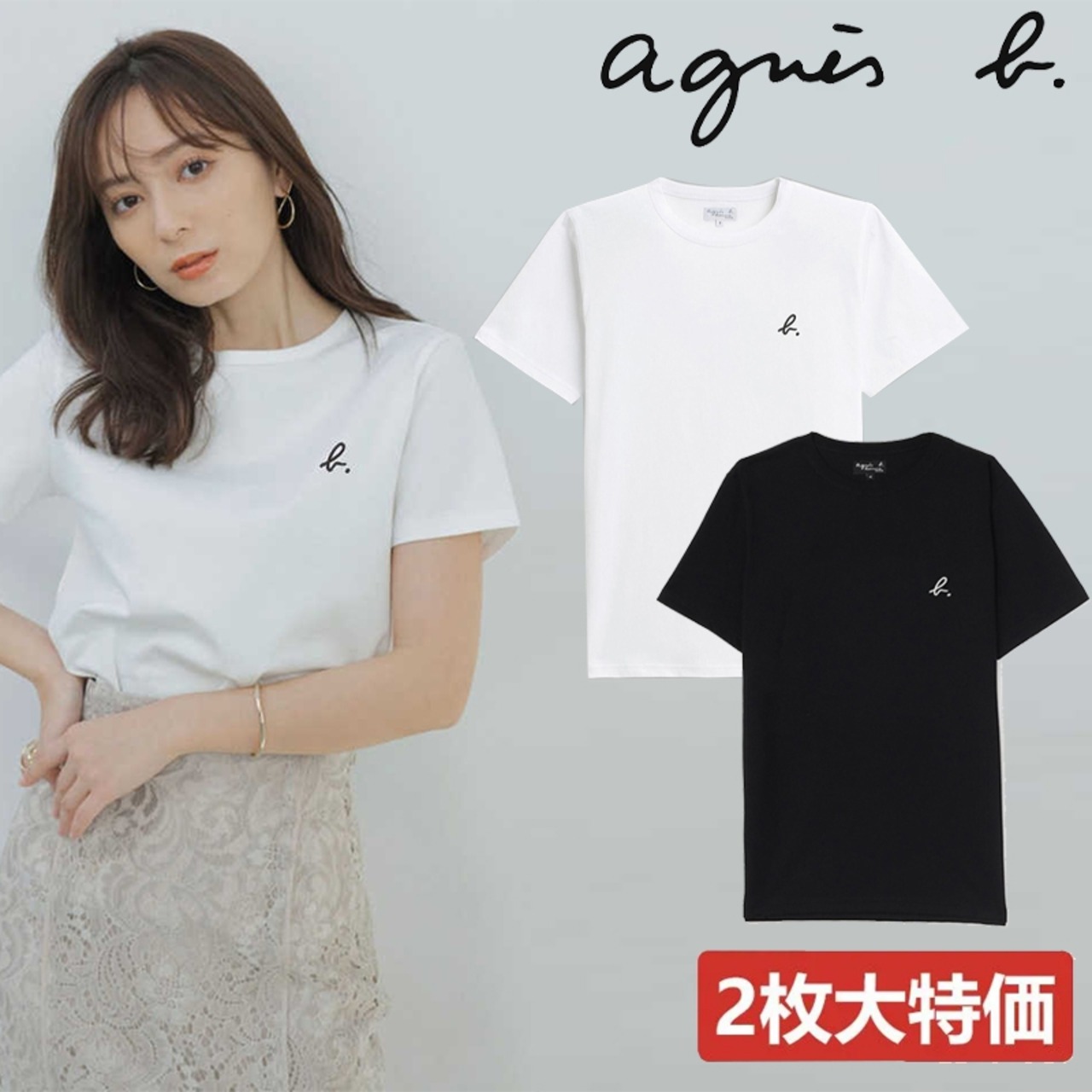 【2枚大特価】agnes b. アニエスベー 刺繍 ロゴ 半袖 Tシャツ シンプル無地 カジュアル レディース 綿 半袖 Tシャツ