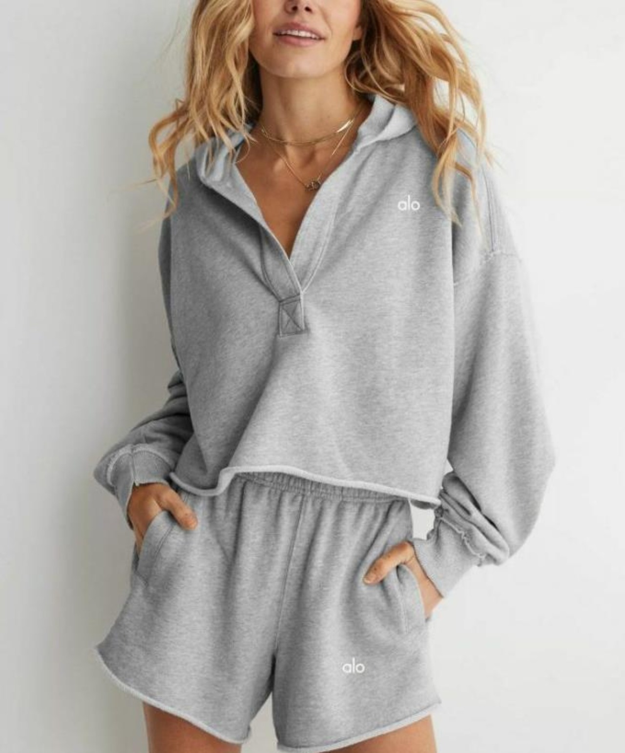 Alo Yoga アロヨガ スウェットシャツ Vネック 長袖 パーカー ブラック ホワイト グレー スポーツウェア ヨガ