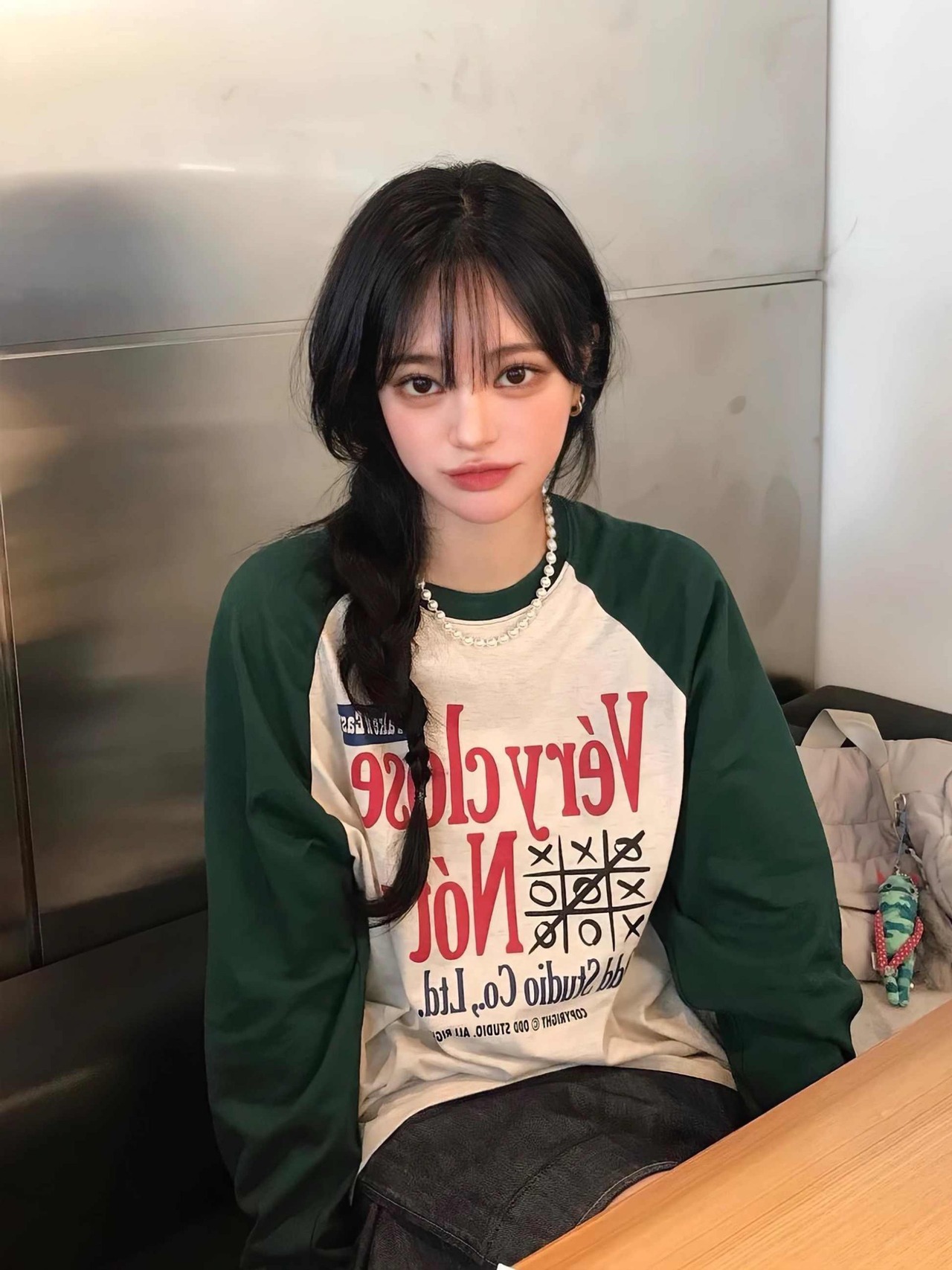 袖の切り替えがアクセントになったラグランスリーブに、存在感のあるプリントが施され一枚でお洒落見えするデザインです。