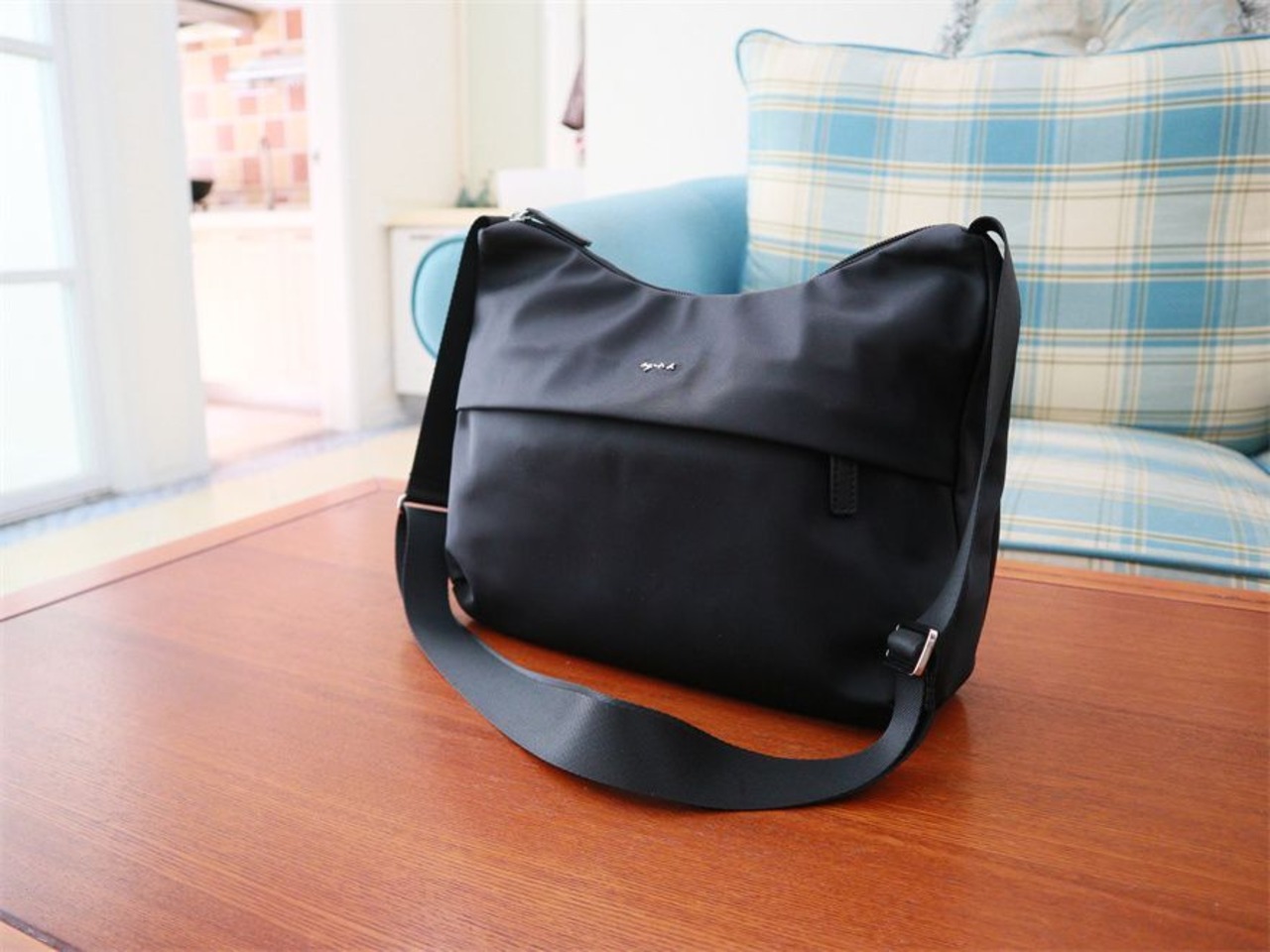 アニエスベー定番のナイロン素材を使用したショルダーバッグ。