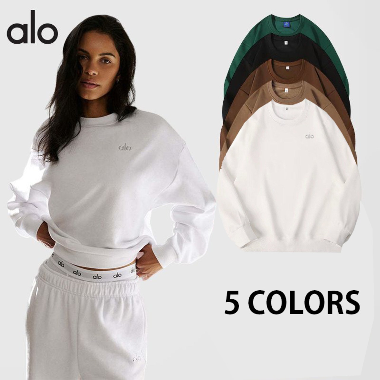 Alo Yoga クルーネックスウェット アロヨガ レディース トレンドデザイン カジュアルウェア リラックスフィット 秋冬シーズン 多色展開 ホワイト ピンク グレー ブルー ネイビー