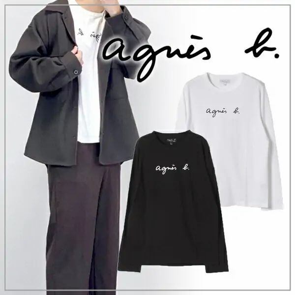 【2枚大特価】agnes b. アニエスベー ロゴ 長袖 Tシャツ シンプル無地 カジュアル メンズ レディース 長袖 Tシャツ