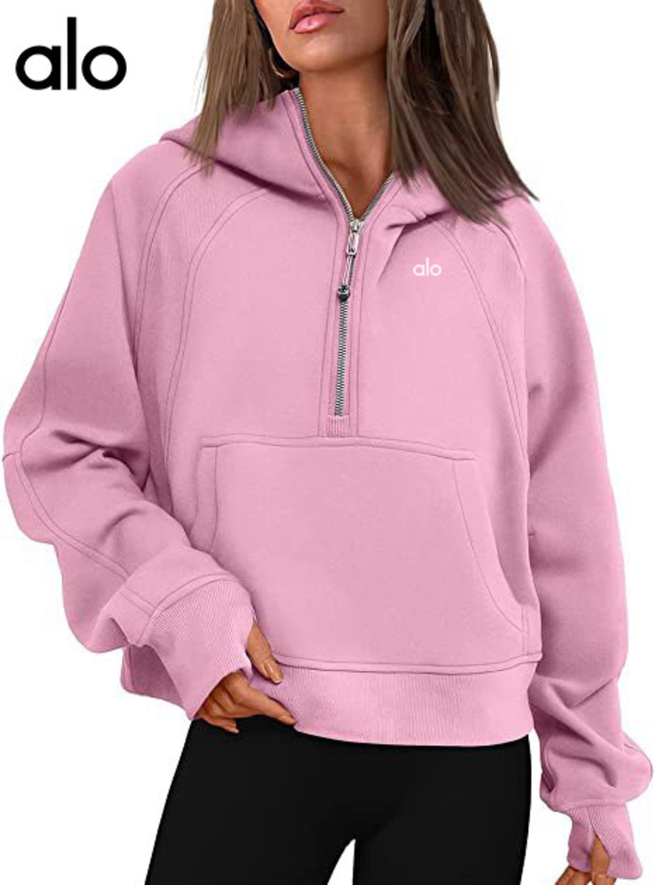 Alo Yoga アローヨガ パーカー レディース 裹起毛 ゆったり スウェット ハーフジップ スポーツ 旅行 ブラック ホワイト グリーン ブルー ピンク