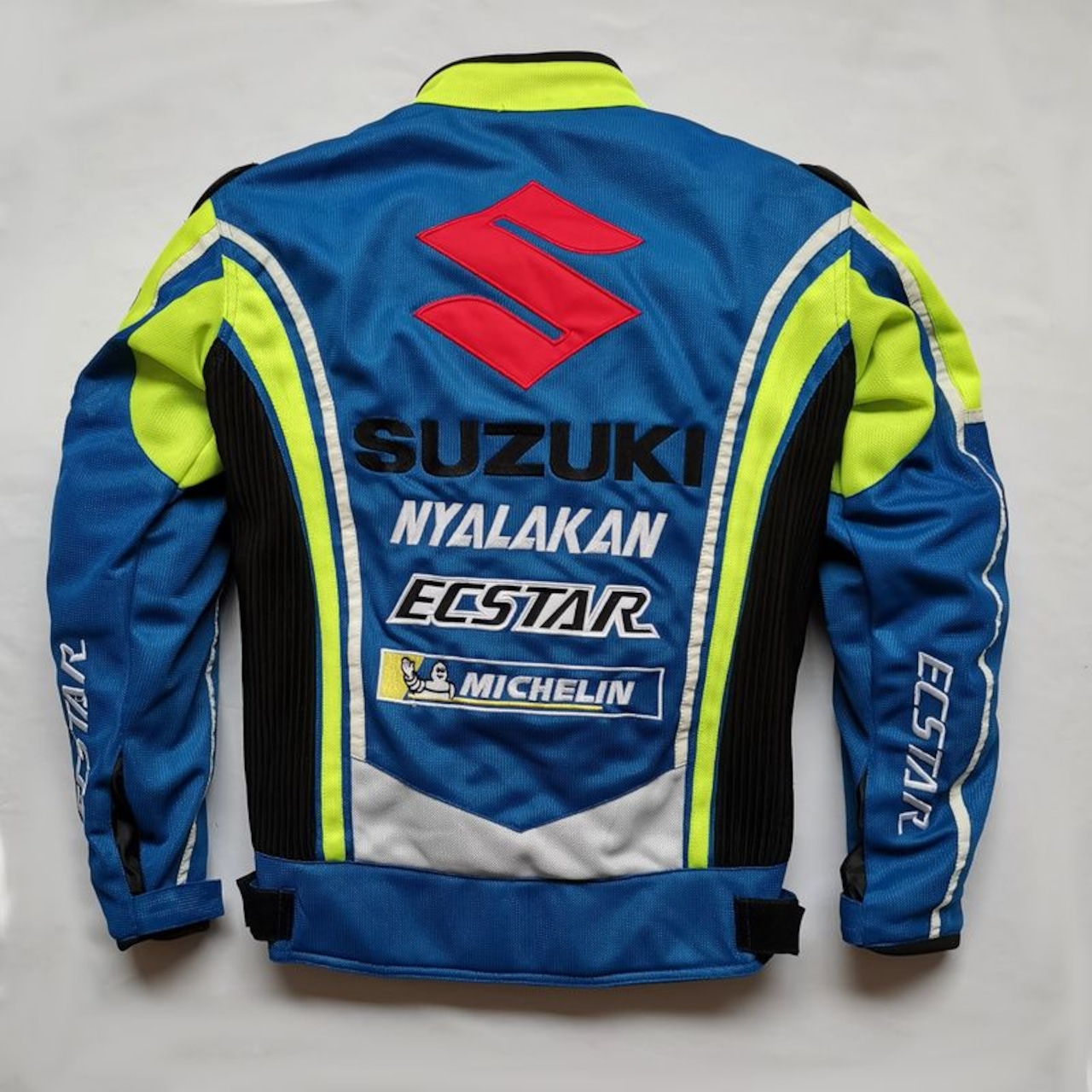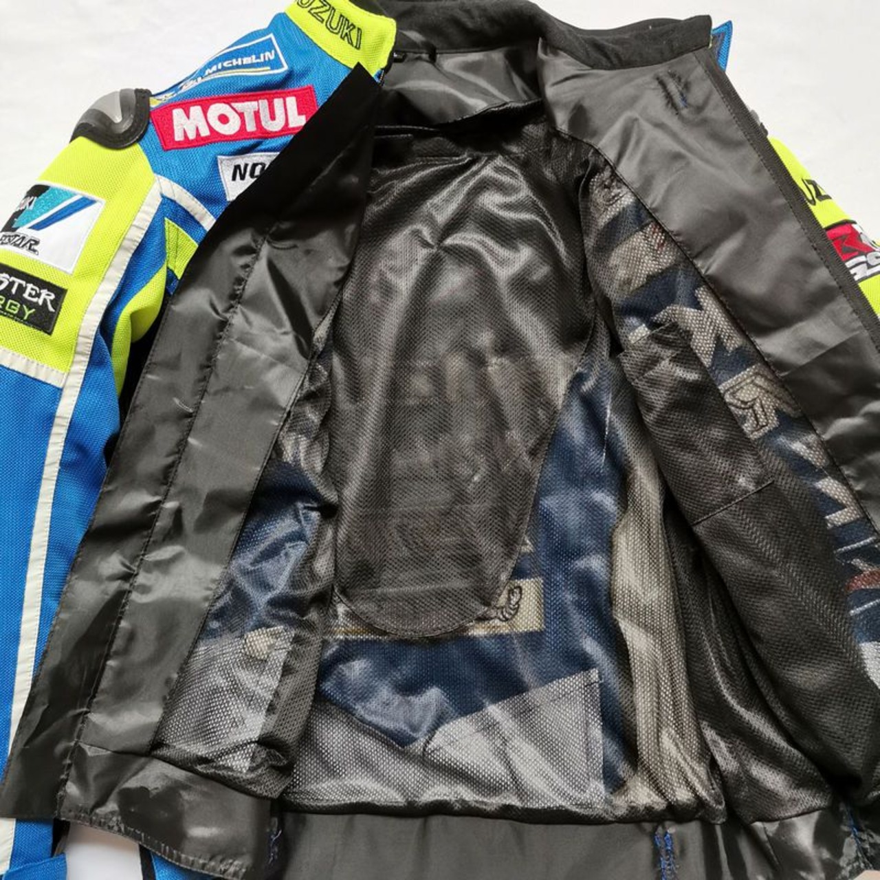 SUZUKI スズキ ライダースジャケット バイクウェア メッシュ 夏用モデル ジャケット メンズ 耐磨 カコイイ プロテクター装備 バイク 耐衝撃 防撥水 通気 防風 ブルー