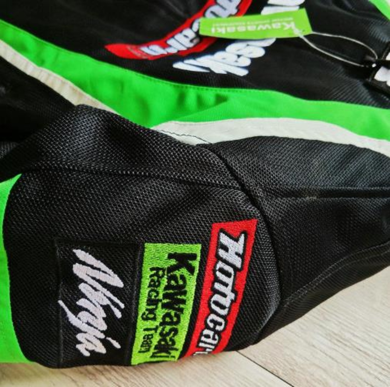 黒を基調としたデザインにほか色アクセントがあり、HRCロゴが施されています。バイクライディングに最適なスタイルです。