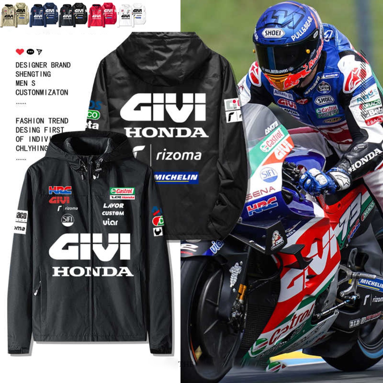 honda givi ジャケット スレーシング ジャケット バイクウエアグッズ 新品 美品 メーカー 車 モータースポーツ 防風 長袖 ブラック ホワイト ネイビー レッド カーキ 5色