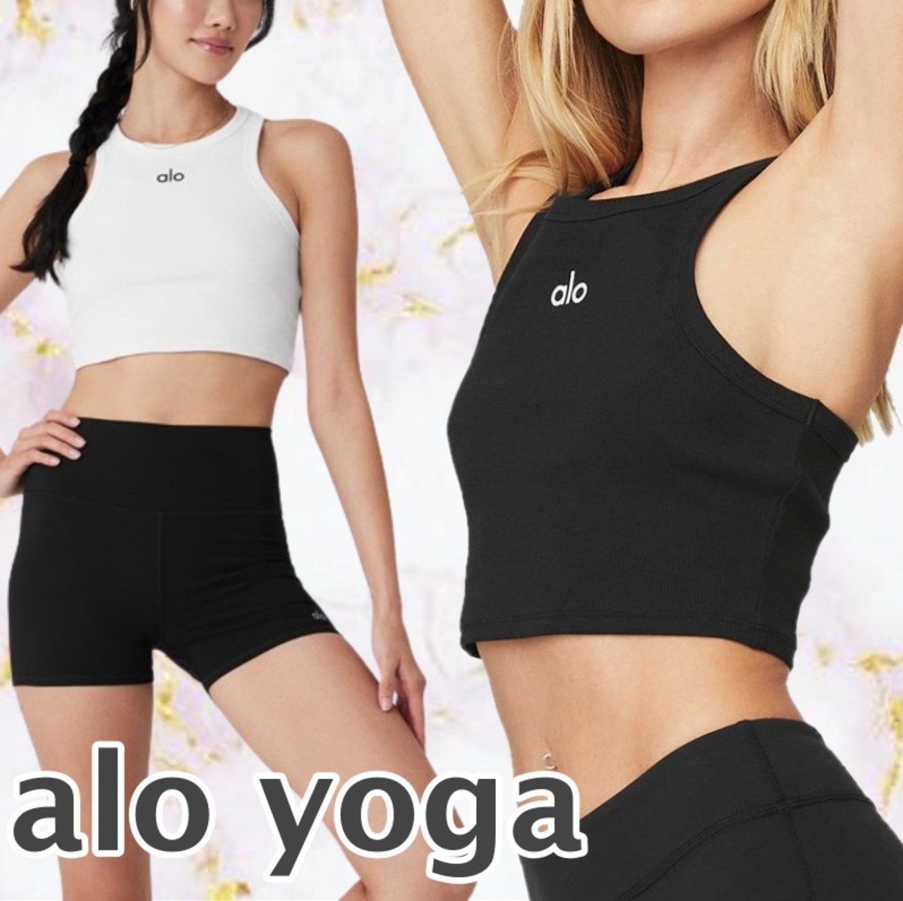 Alo Yoga アロヨガ タンクトップ レディース カップ付き LOGO ノースリーブ ロゴ ワンポイント 刺繍 無地 ホワイト ブラック 2色