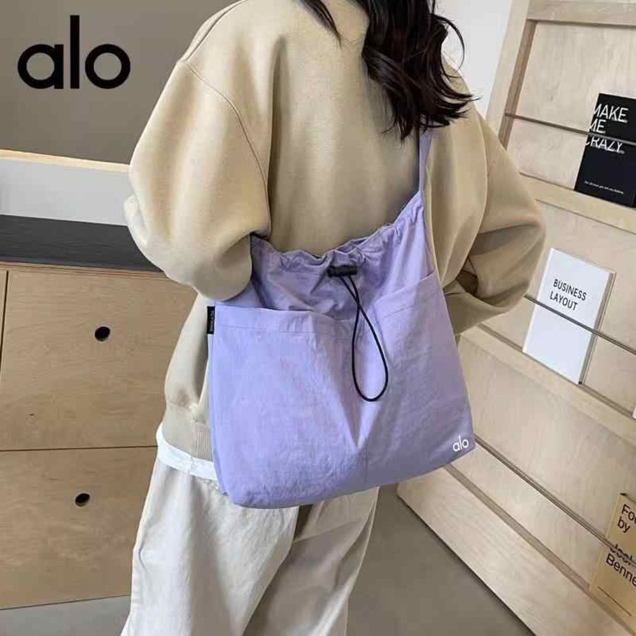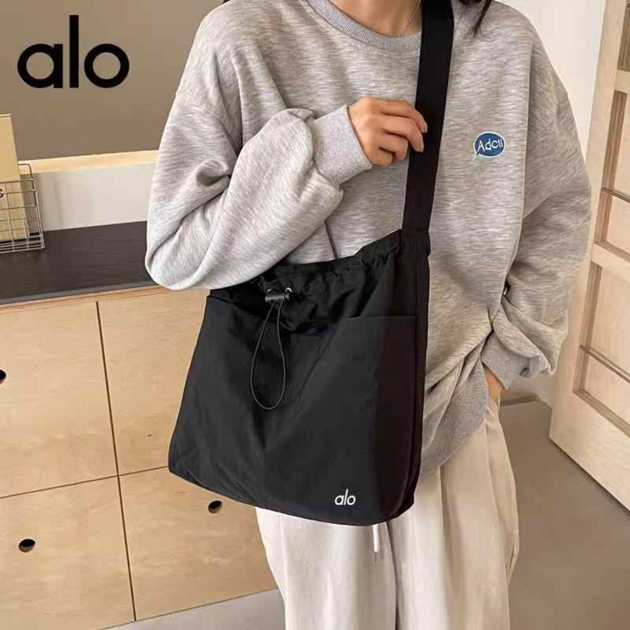 Alo Yoga アロヨガ ショルダーバッグ 斜め掛け 2WAY ベルト 大容量 デザイン 大きめ A4 通学 通勤 ブラック グリーン ベージュ パープル